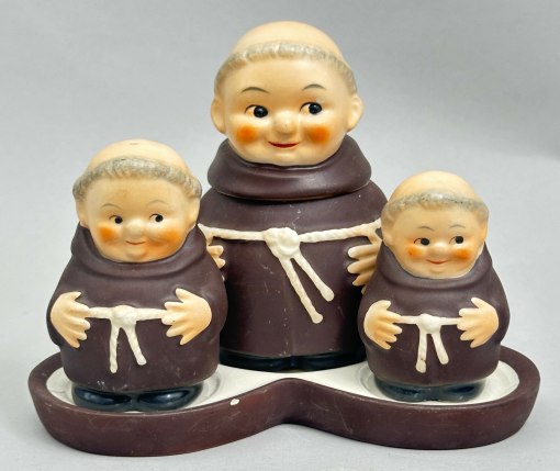 Cruet set in the form of three Friar Tuck Mo...