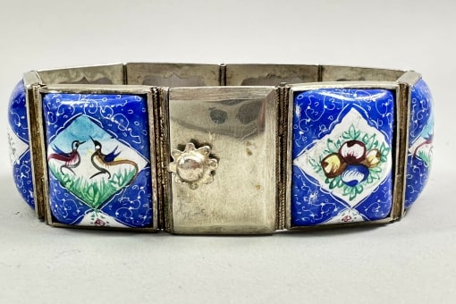 Persian silver bracelet with inset enamel pl...