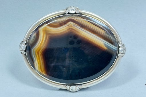 Victorian Silver Mounted Banded Agate Brooch...