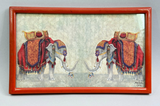 Framed Picture of Two Elephants signed Mary...
