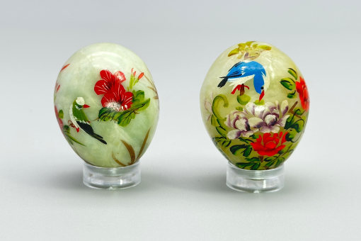 Pair of Chinese hand painted jade Eggs with ...