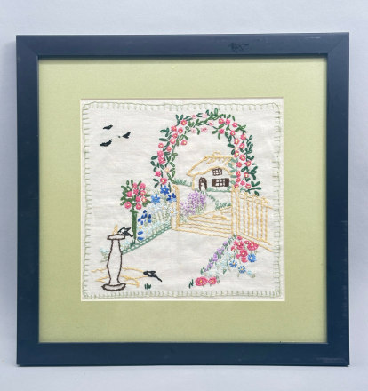 Vintage Needlepoint Picture of a Garden Scen...