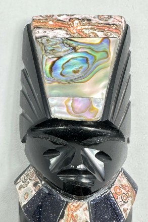 Obsidian Mayan Statuette inlaid with semi pr...