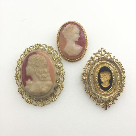 Lot of 3 costume cameo brooches, marked Sphi...