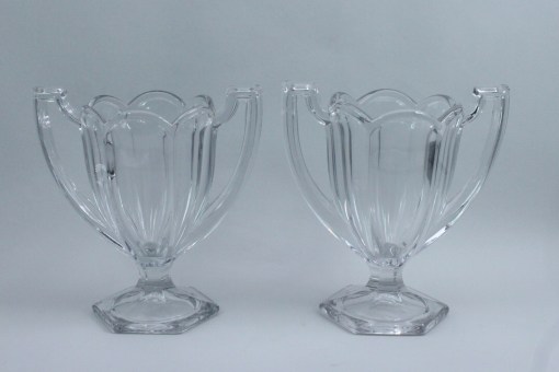A Pair of Art Deco Pressed Glass Trophy Form...