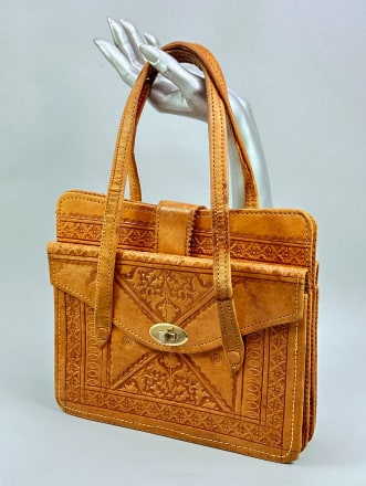 Moroccan tooled leather bag c1960