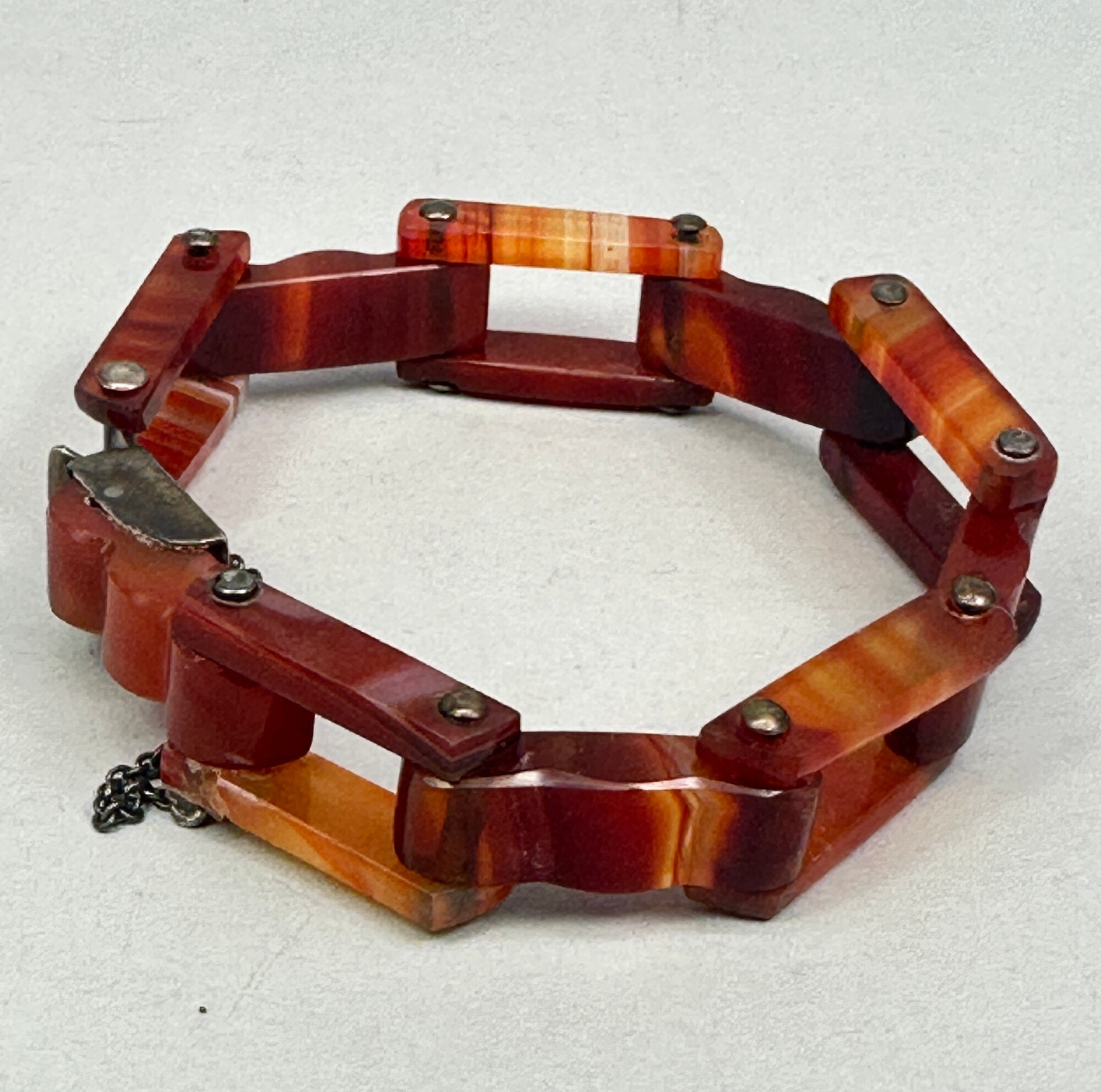 Art Deco Scottish banded carnelian carved link bracelet c1920