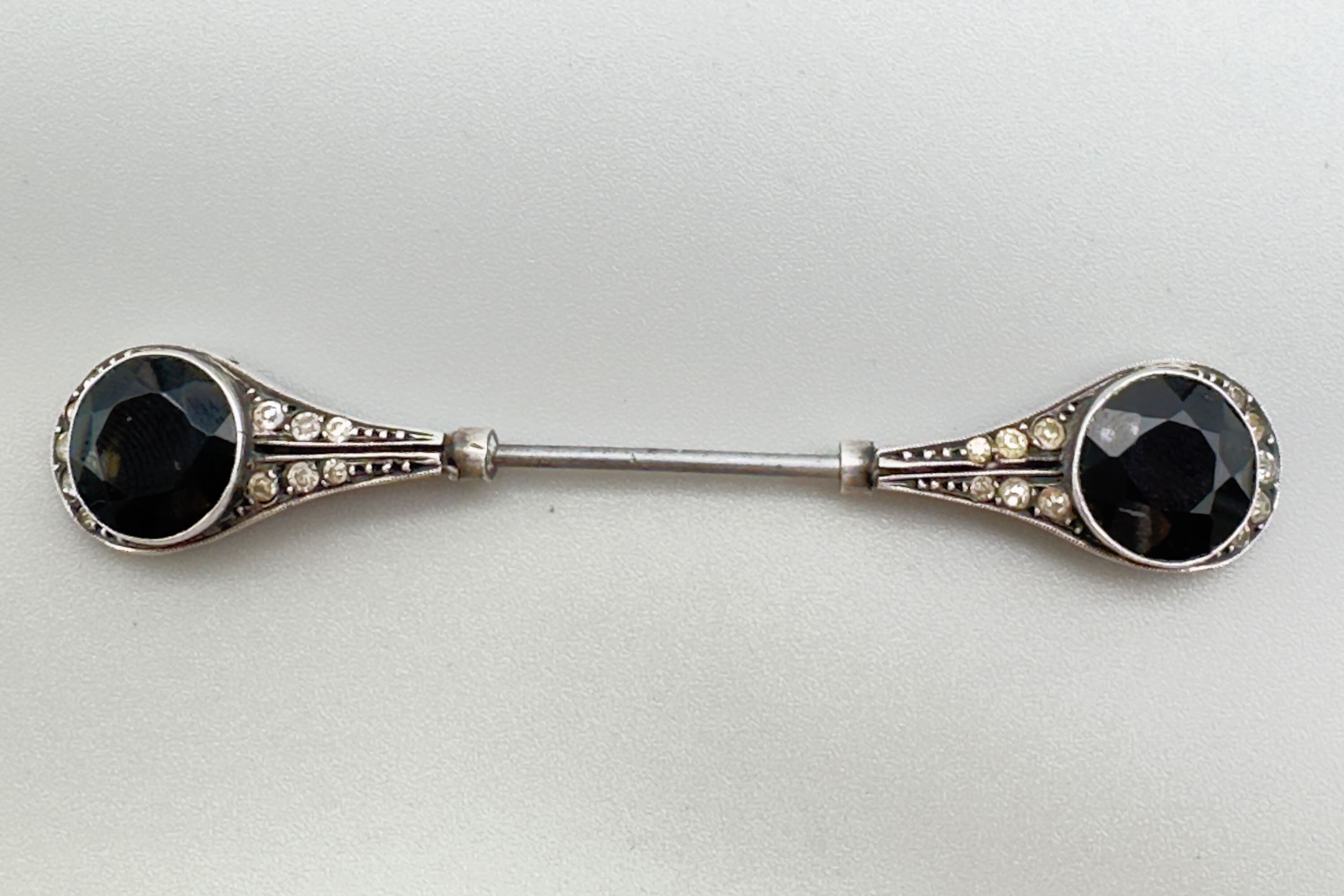 Art Deco double ended stick pin with amethyst and diamonds c1920