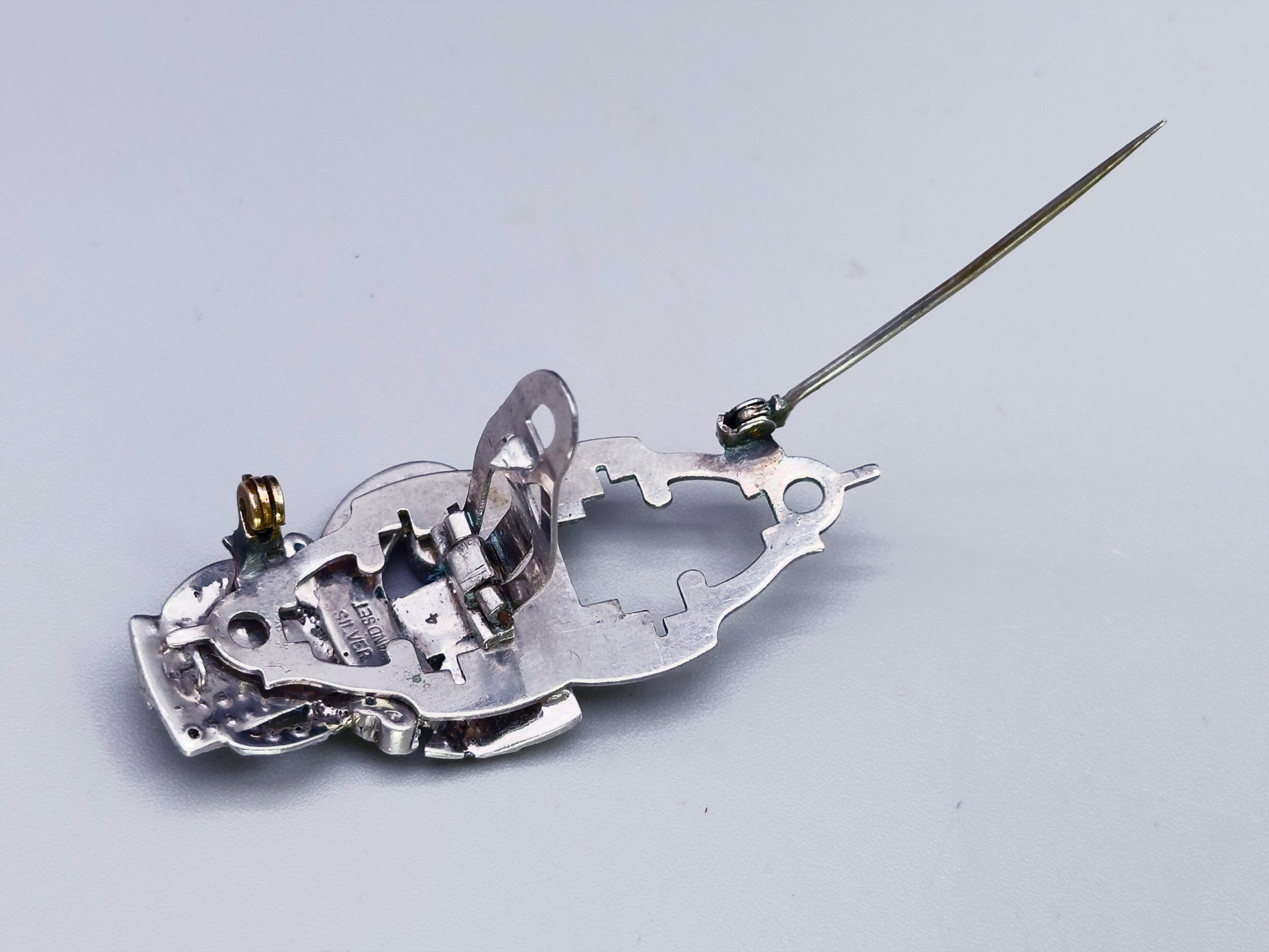 Art Deco silver dress clips/brooch, American c1930