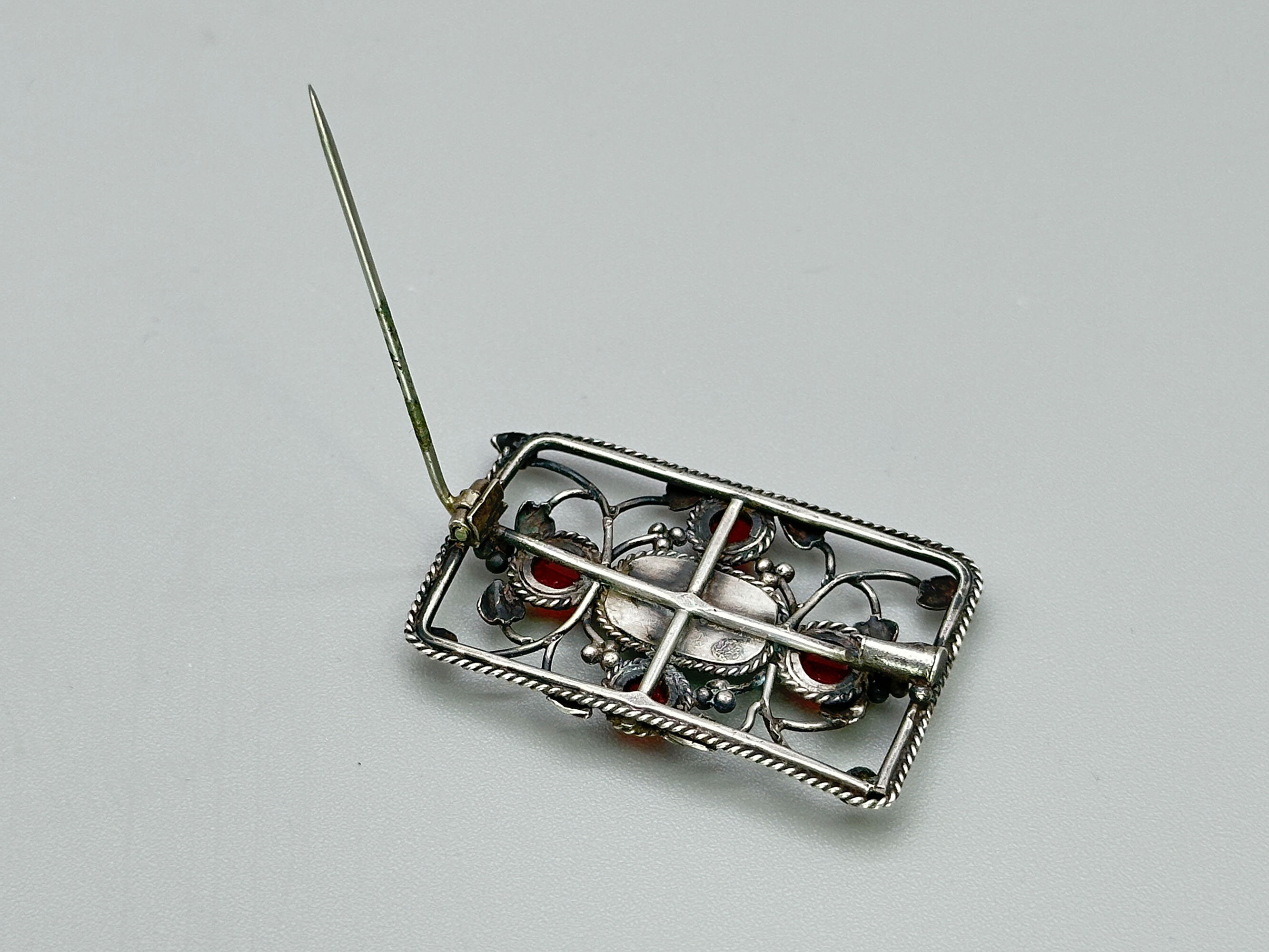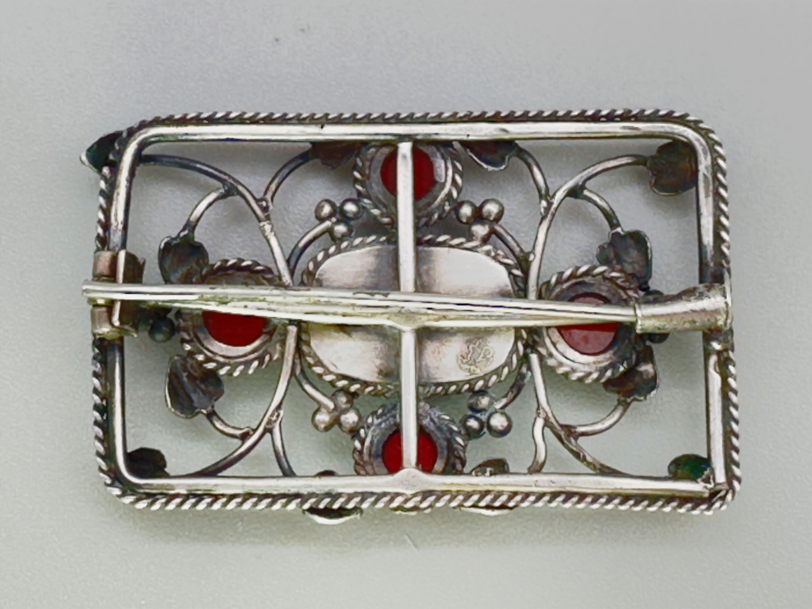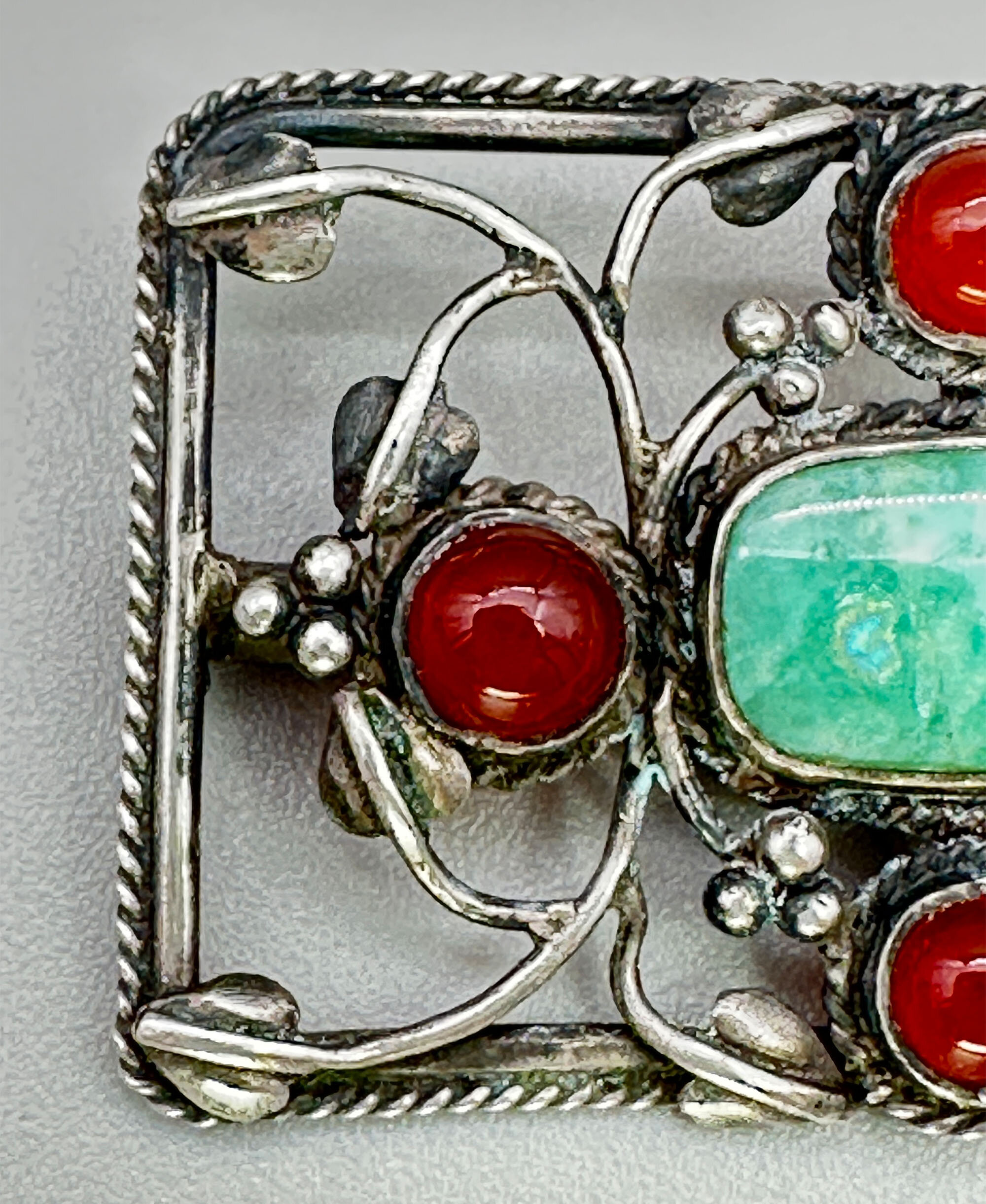 Arts and Crafts brooch with carnelian and aventurine c1910