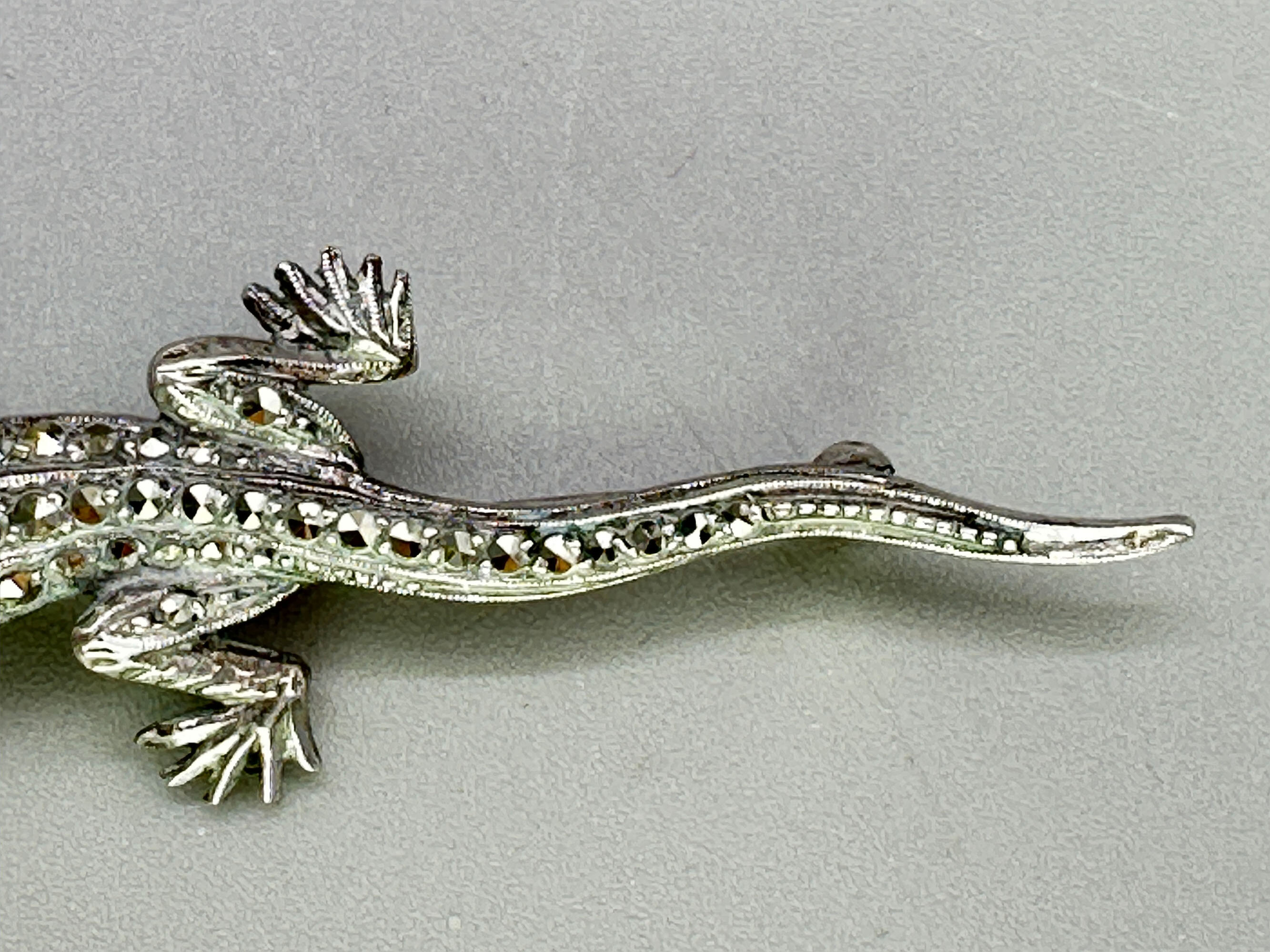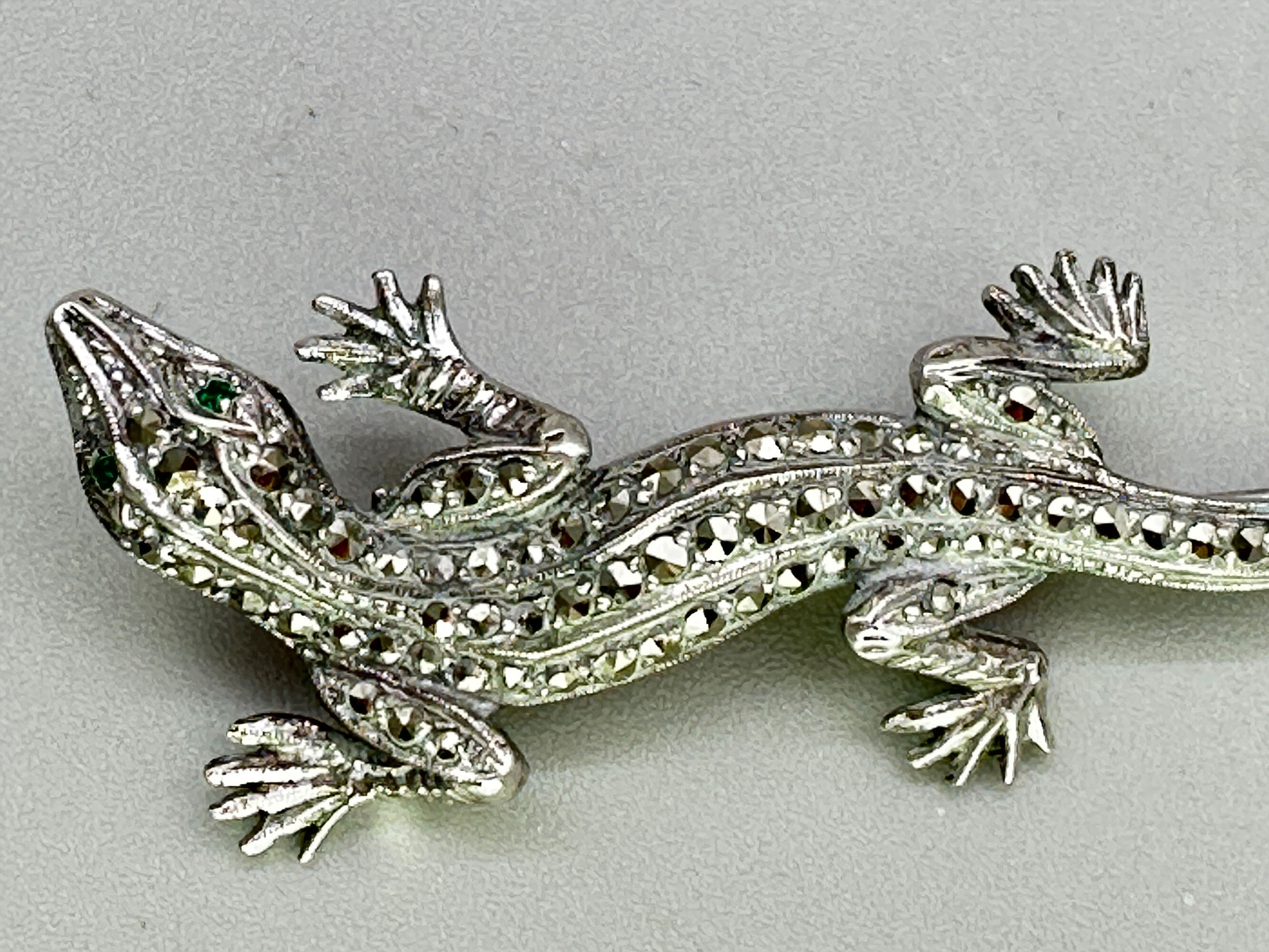 Silver and marcasite lizard brooch, c1950