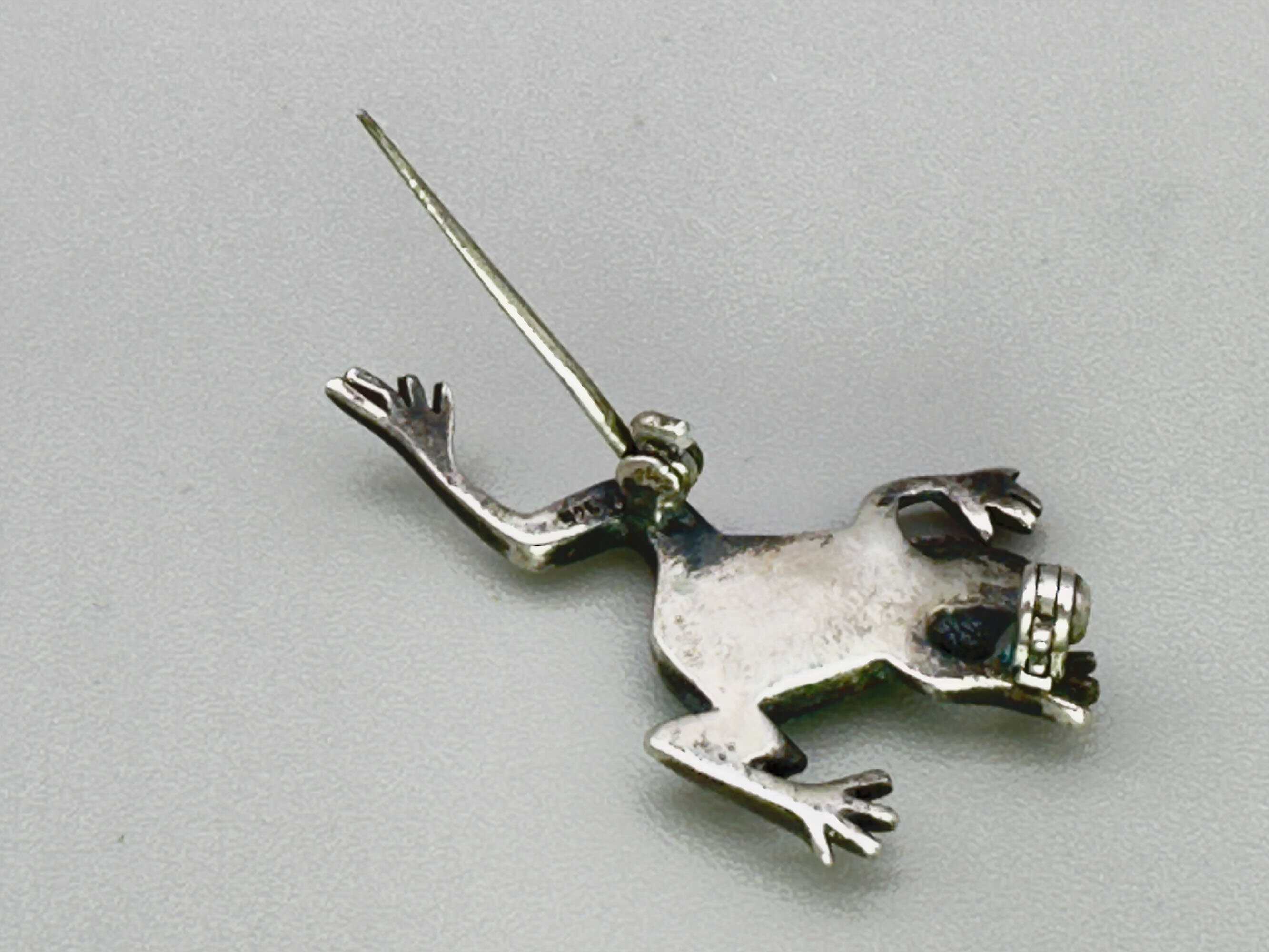 Silver frog brooch with green chalcedony c1900