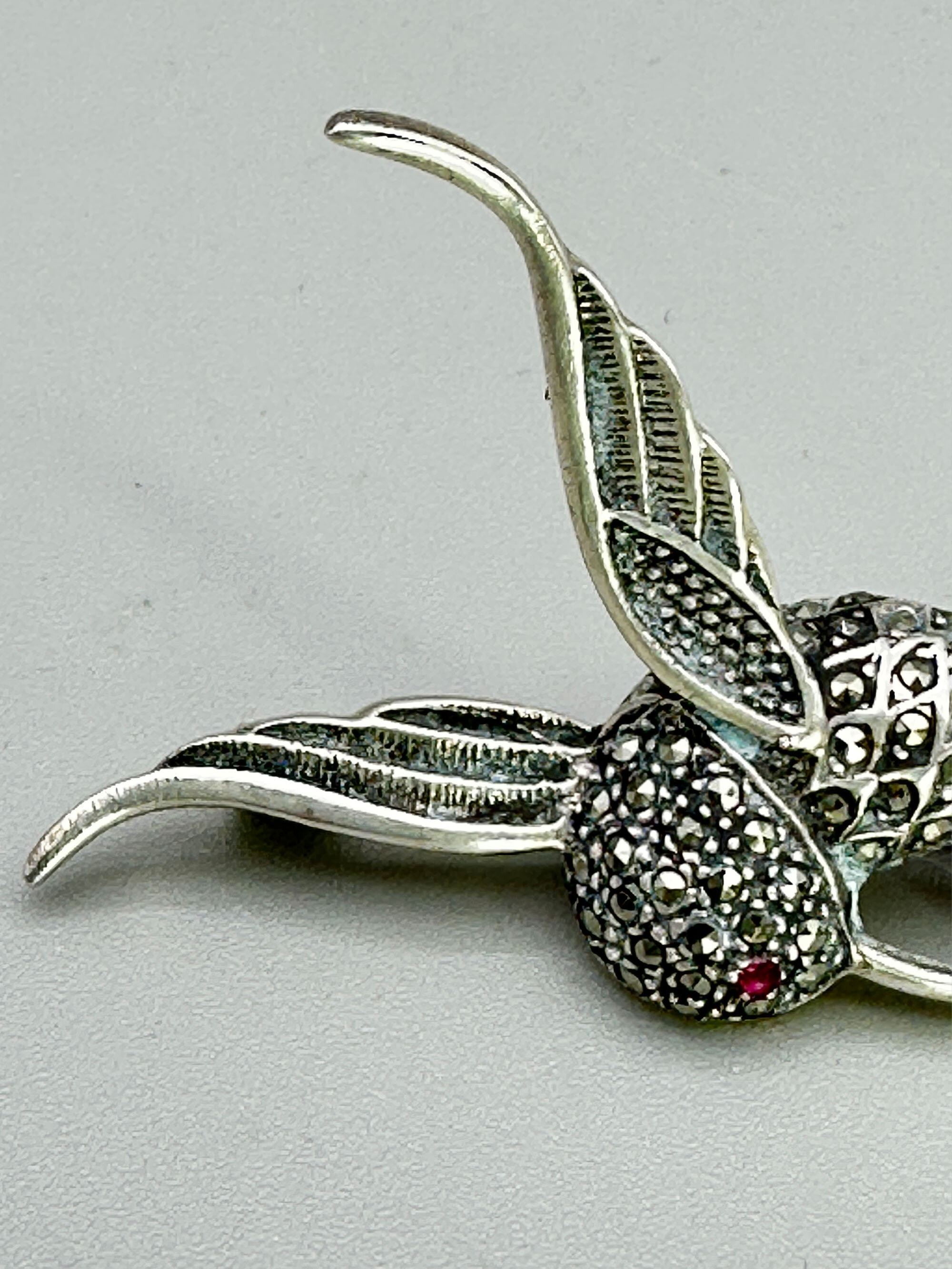 Silver hummingbird brooch with marcasite stones c1950