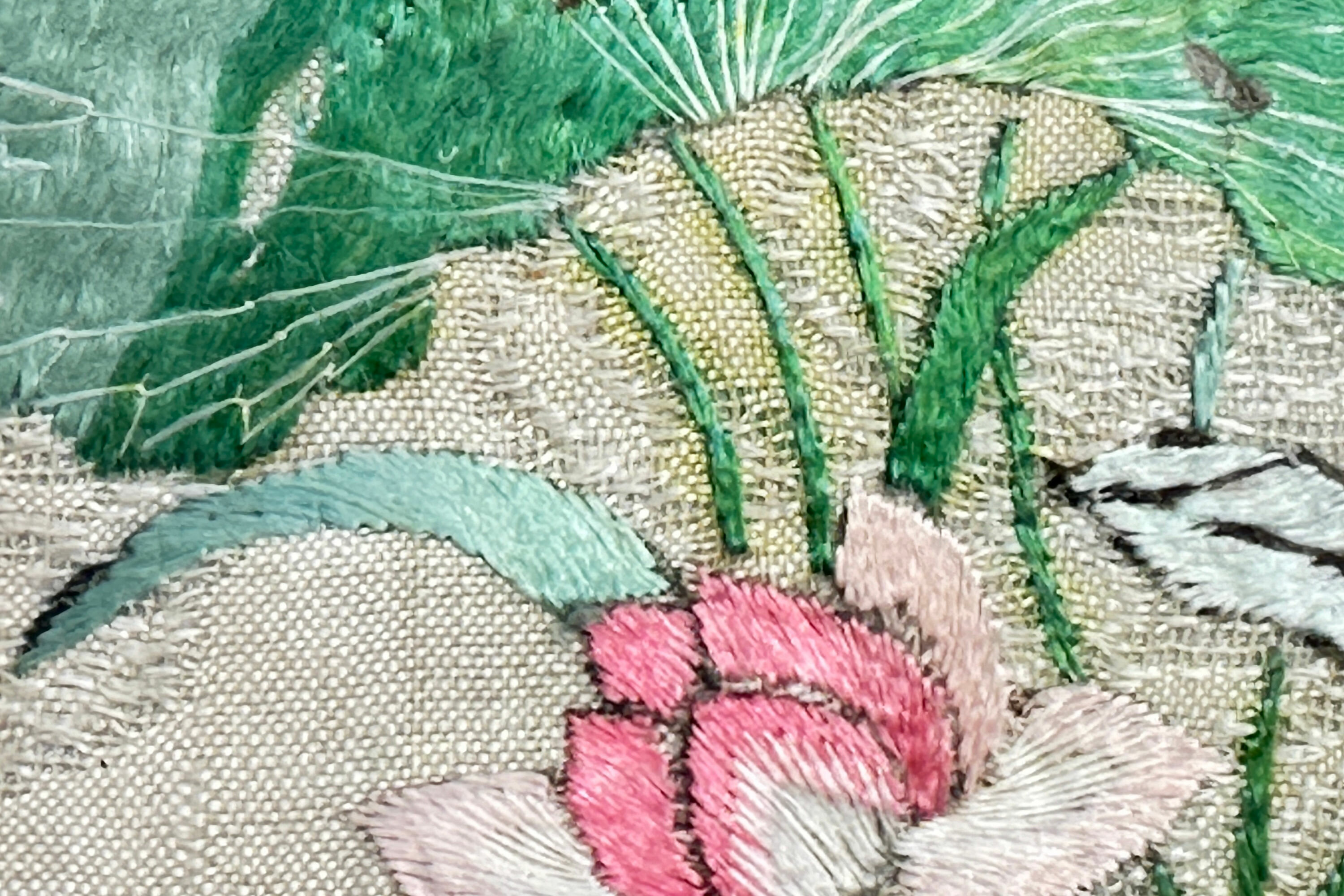 | Condition: | Good condition generally; the silk panel slightly unevenly cut and very slightly loose in the frame; the frame support bent (see image 6) |