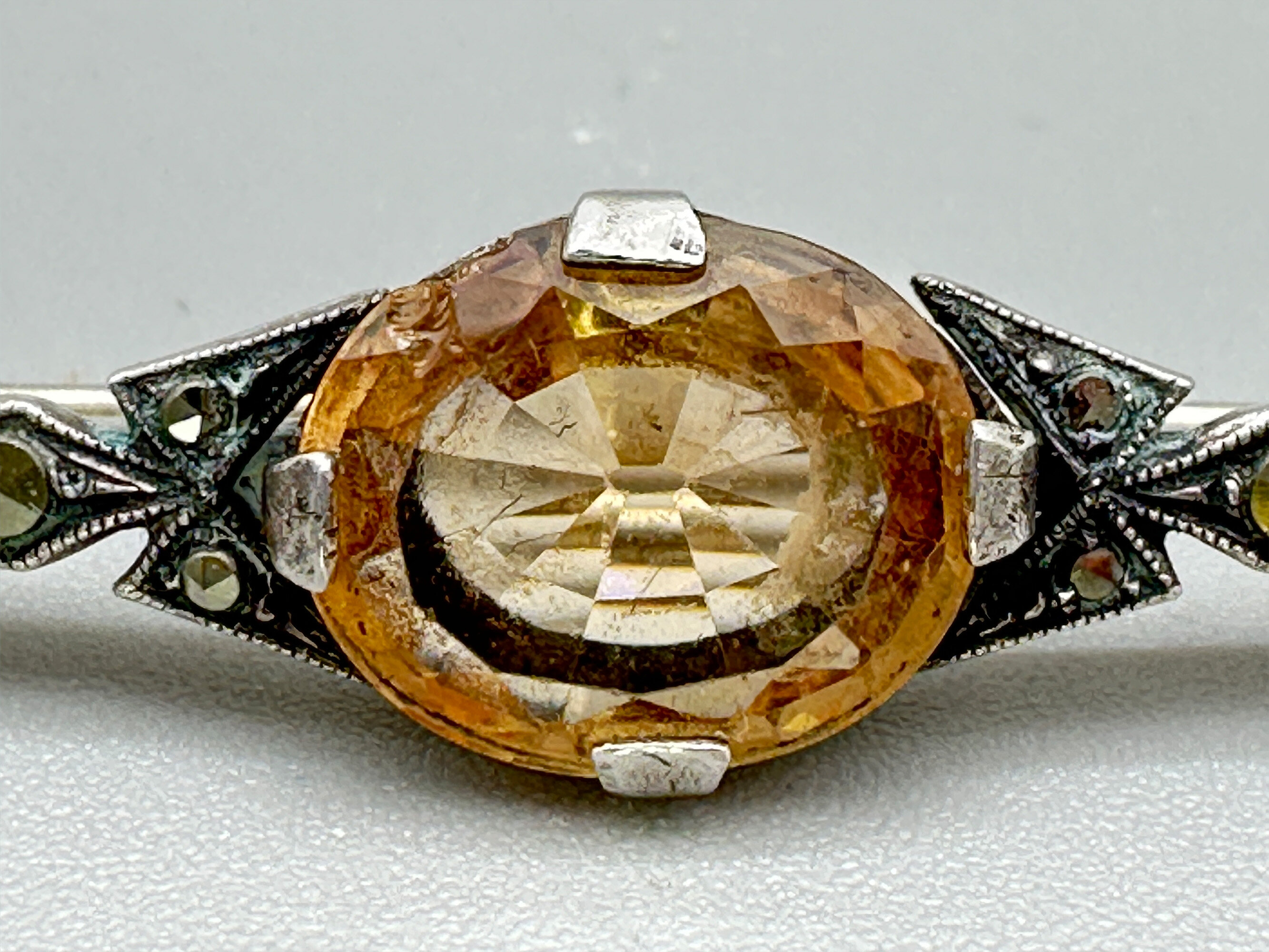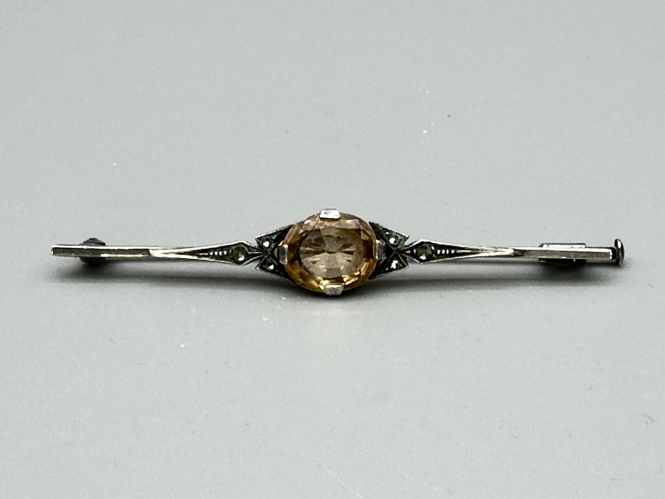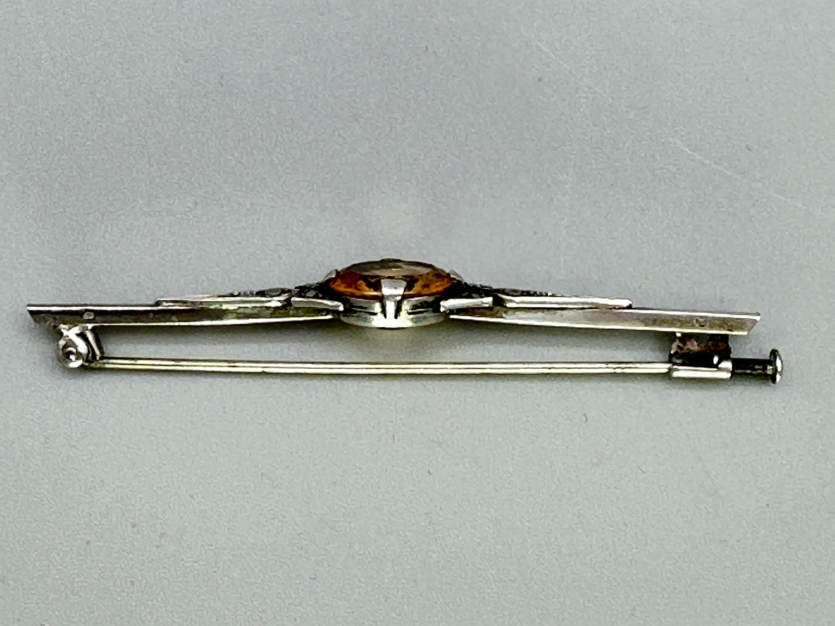 Art Deco bar brooch with cirtrine in fitted box, c1920