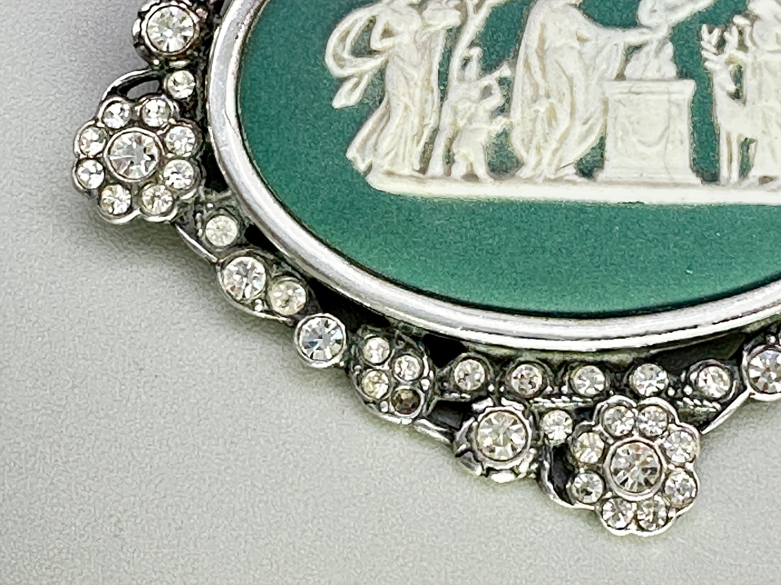 Wedgwood neoclassical brooch mounted in silver with paste stones, London 1973
