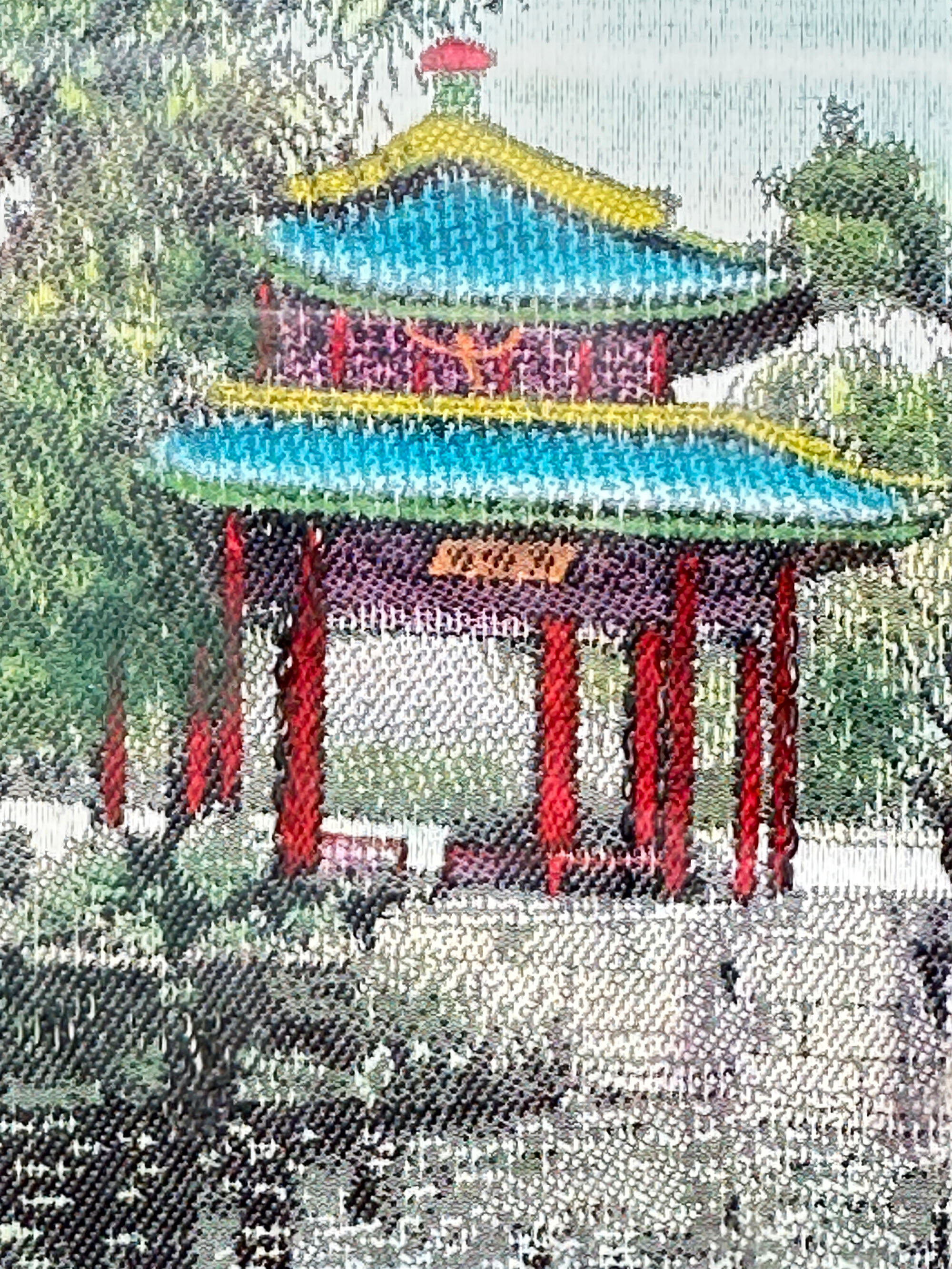 Chinese silk textile picture, Zhichun Pavilion, the Summer Palace, C20th