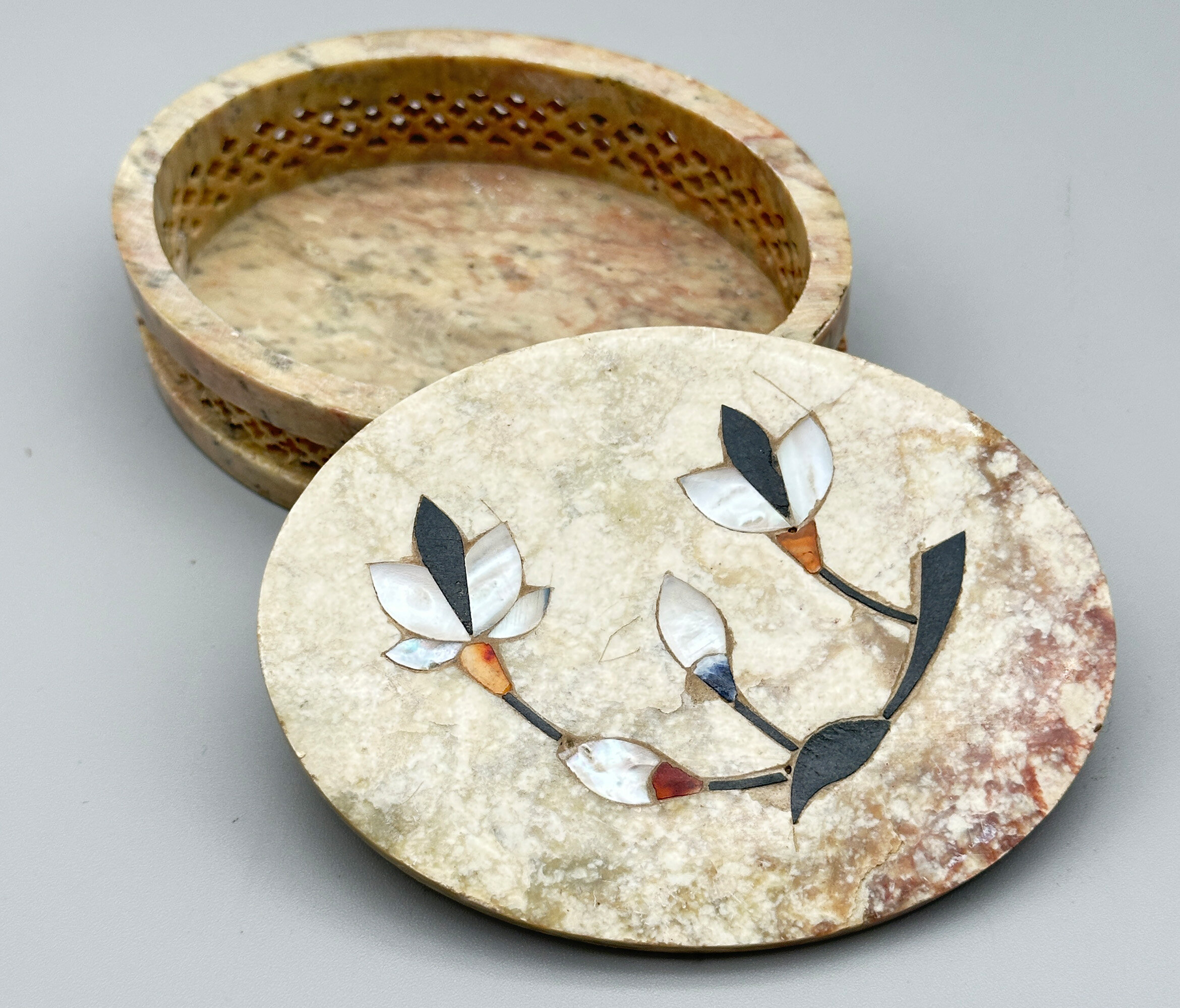 Indian Soapstone Box with Pietra Dura Inlay, C20th