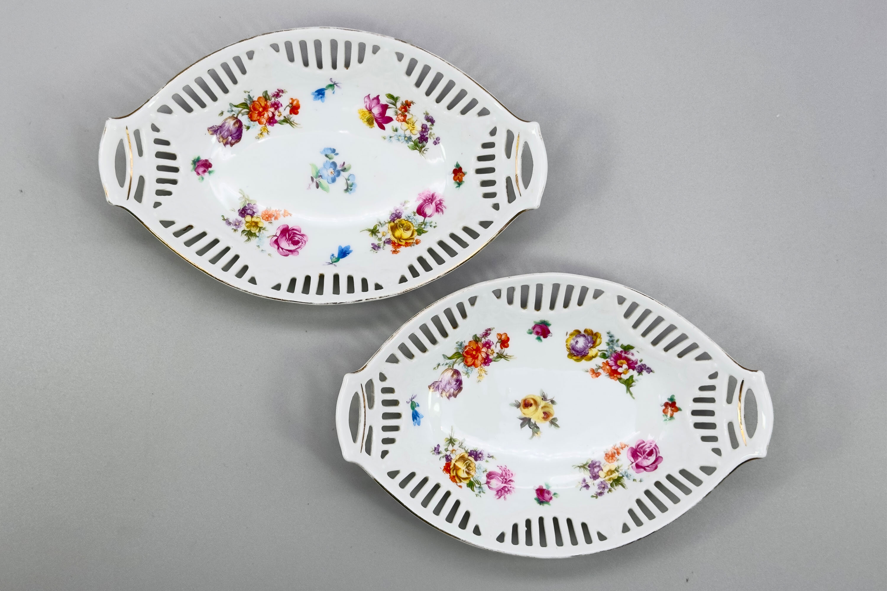 Pair of reticulated edge floral decorated Dishes, Schumann Bavaria, Germany 1920s