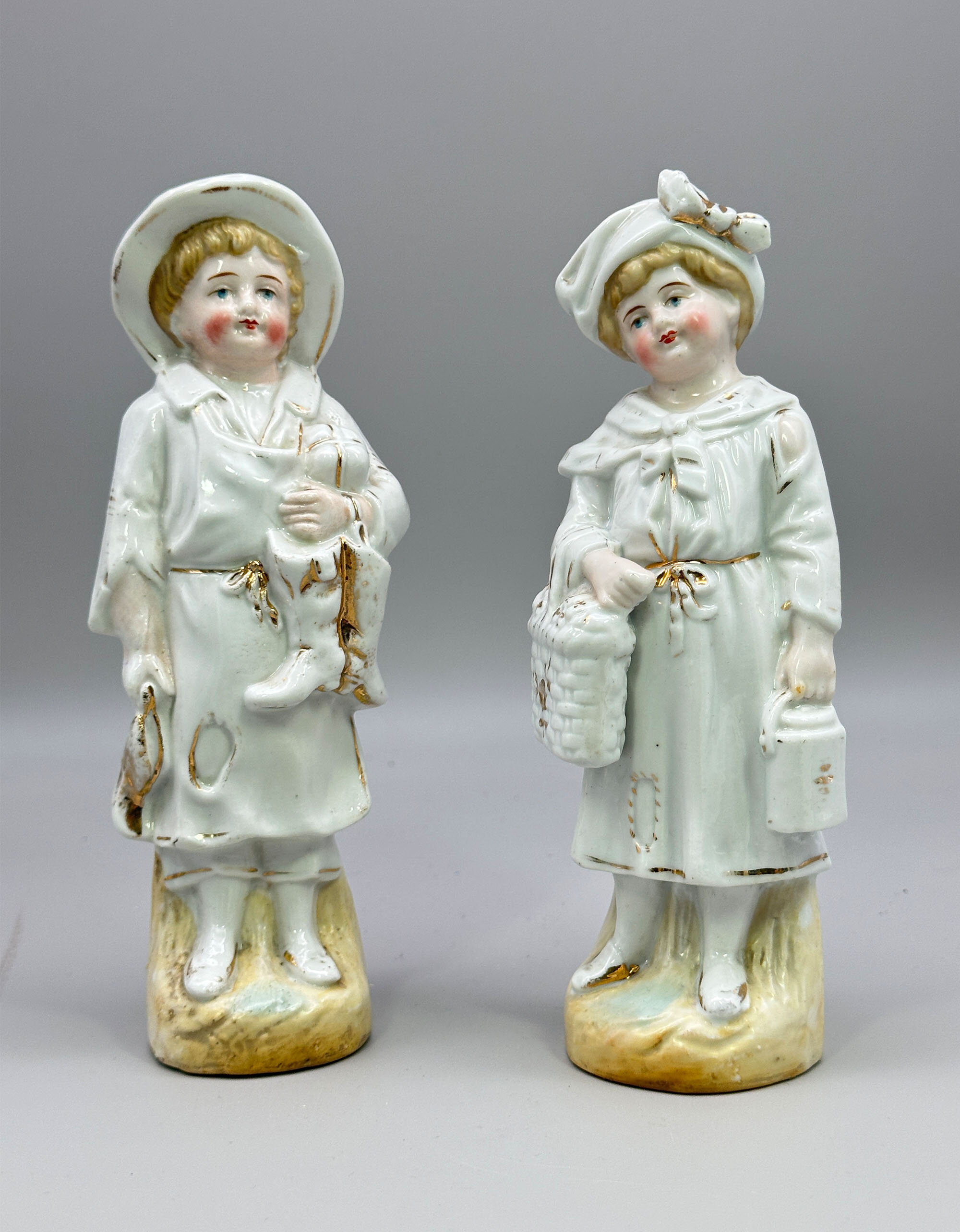 Pair of Staffordshire style figures, Boy and Girl, probably German, late C19th