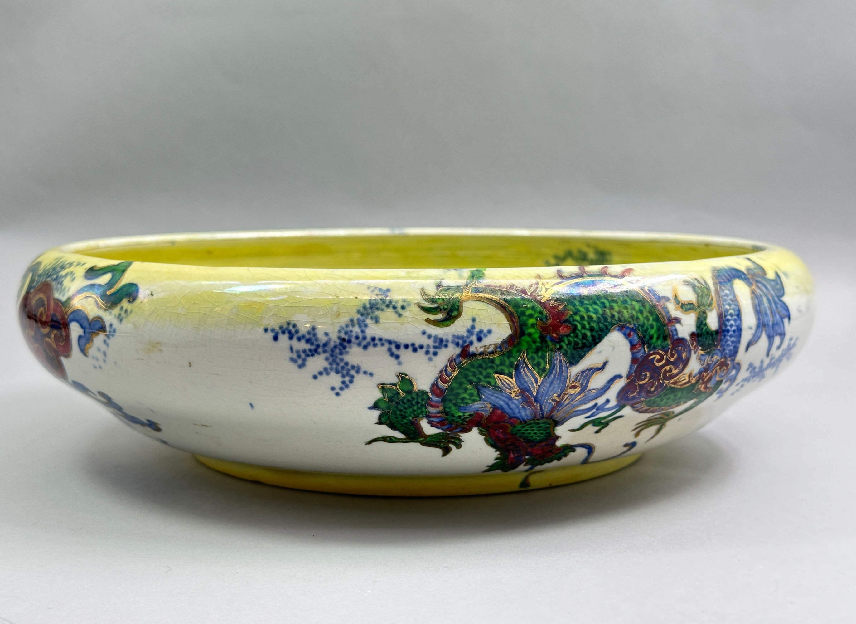Yellow ground Bursley Ware Dragon Bowl by Frederick Rhead, circa 1920