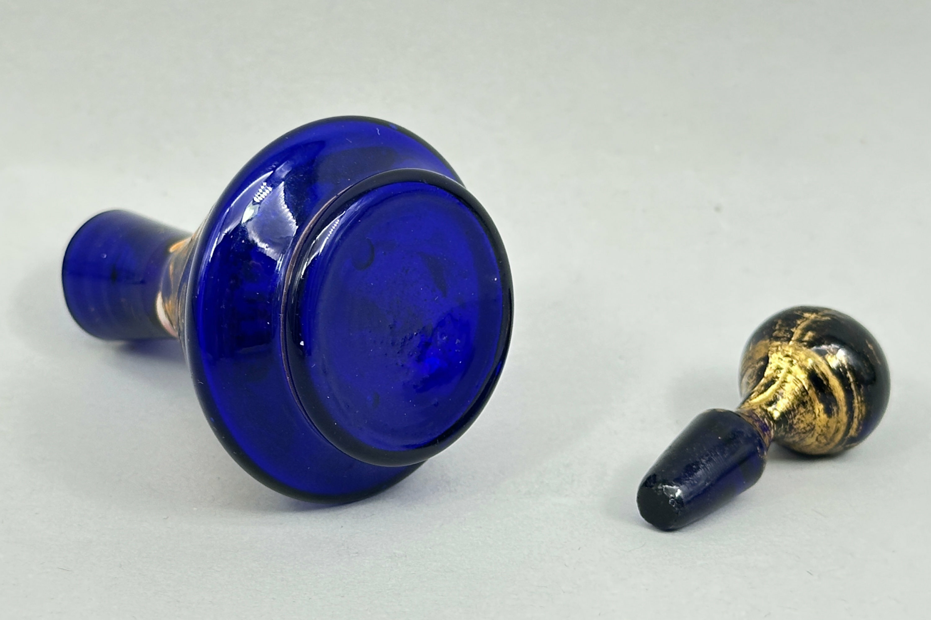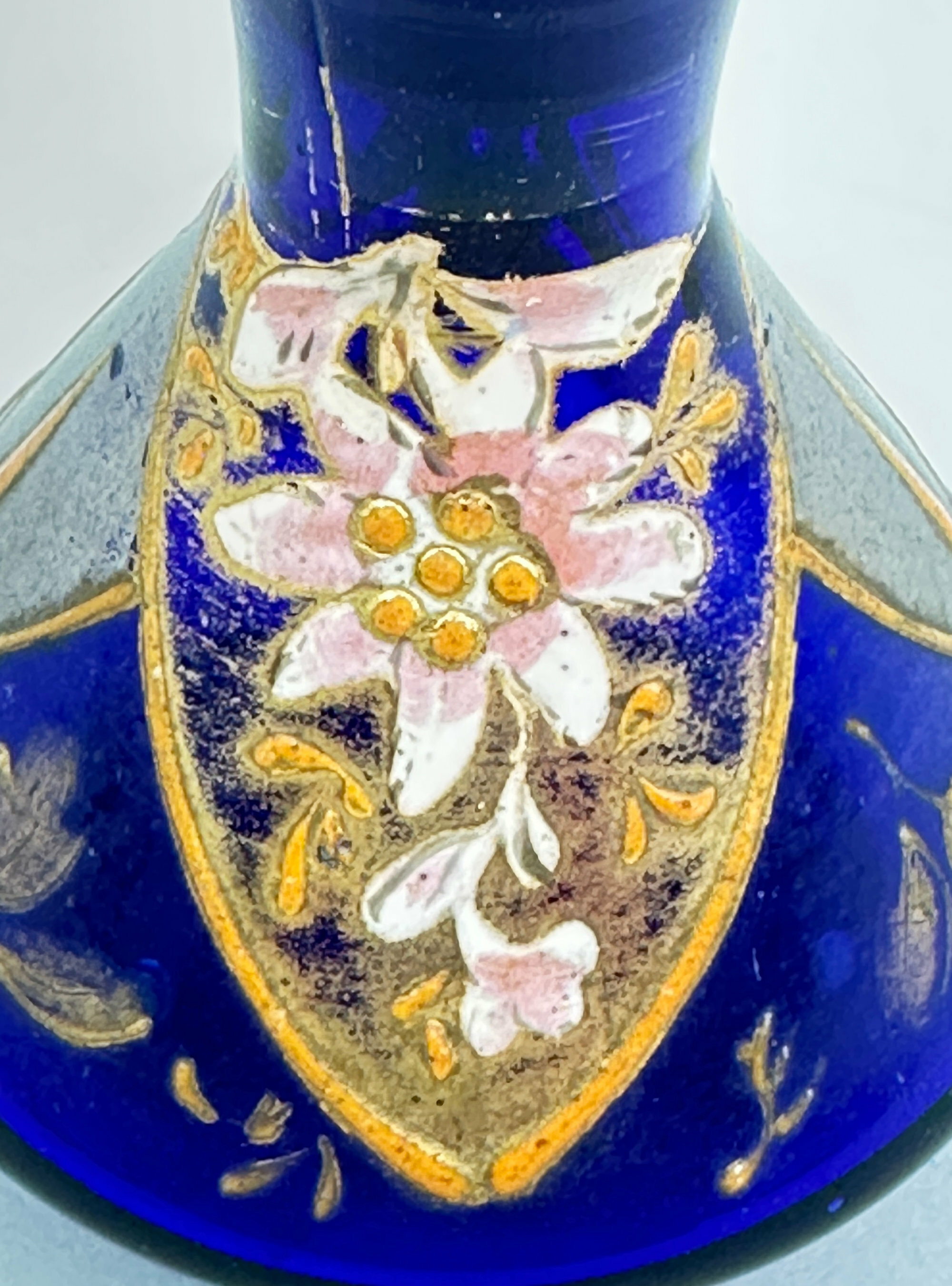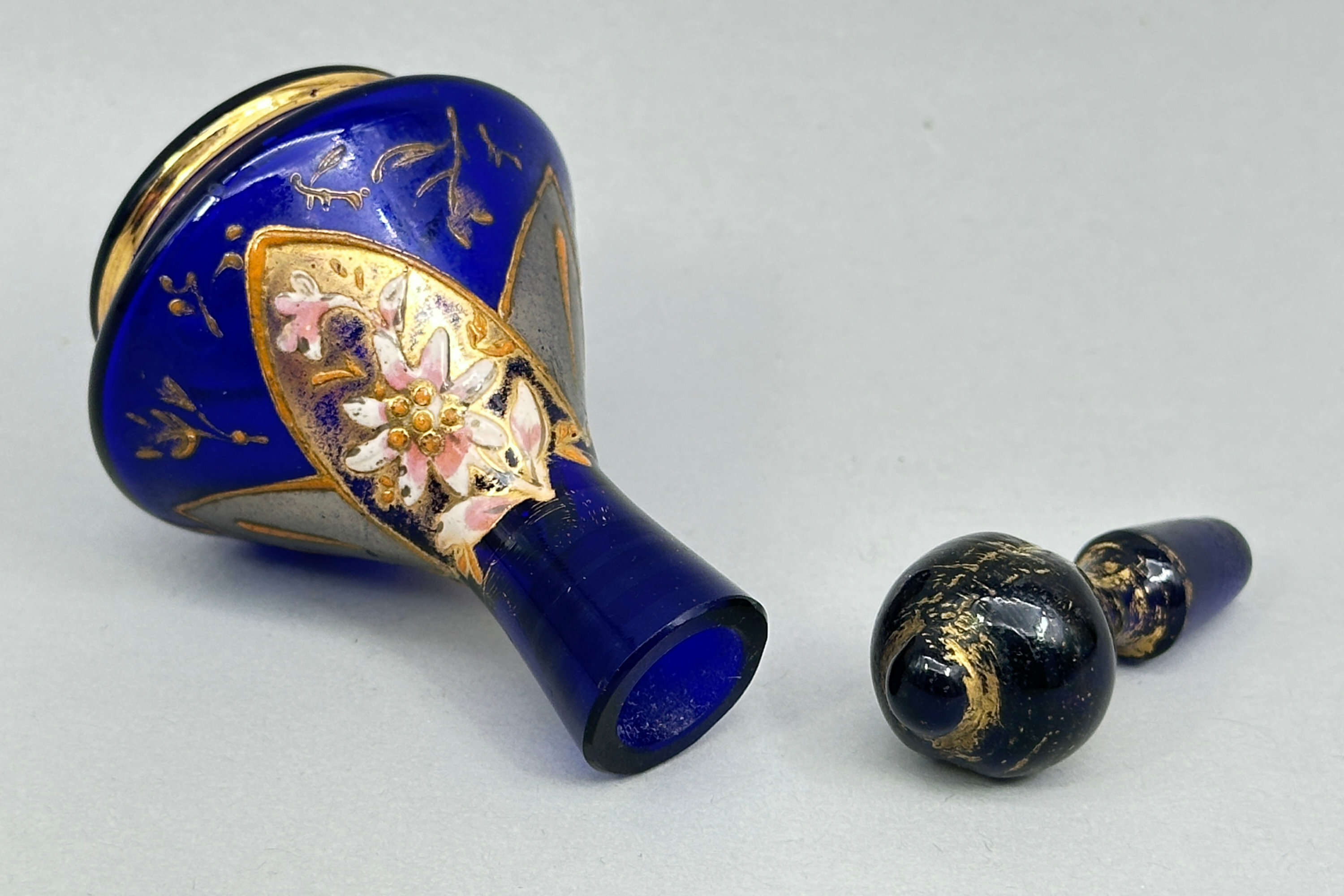 Bohemian cobalt blue Perfume Bottle and Stopper with enamel decoration, C20th