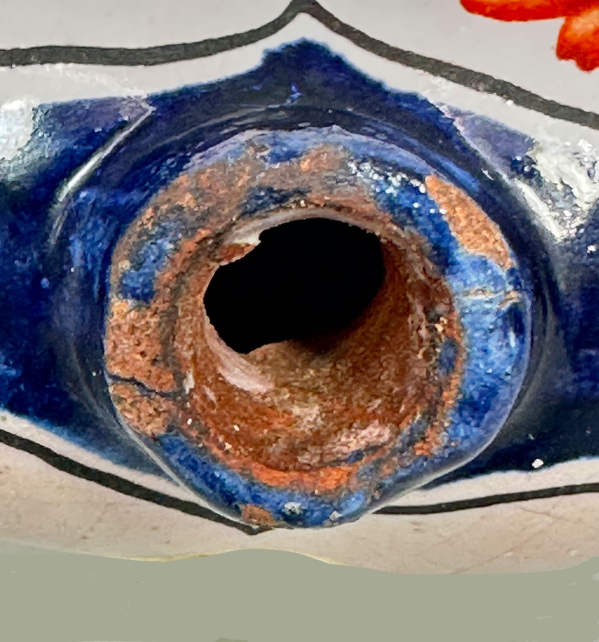 Condition: | Good condition generally, very slight glaze loss at the top of the bottle with minute traces of cork remaining, but the glazing overall in excellent condition with no losses. |