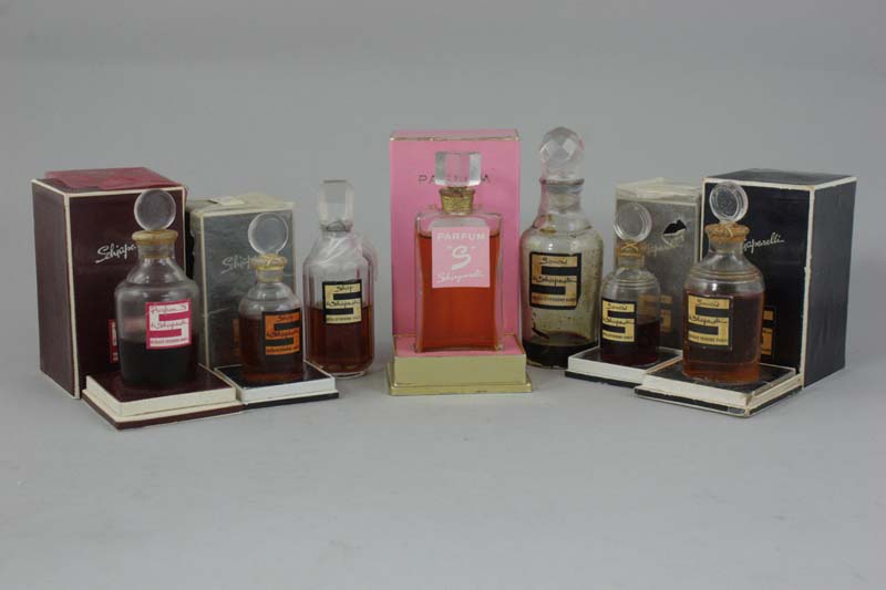 A selection of Schiaparelli perfume bottles