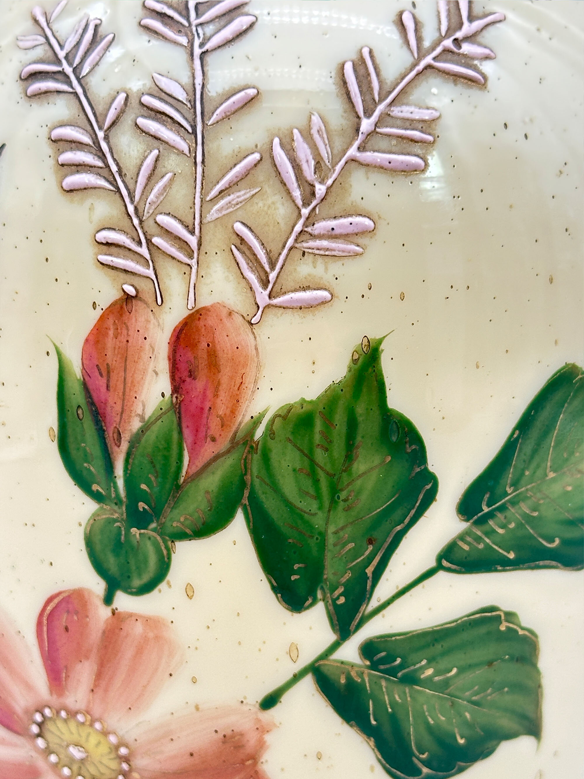Cream coloured milk glass vase with bird, French early C20th
