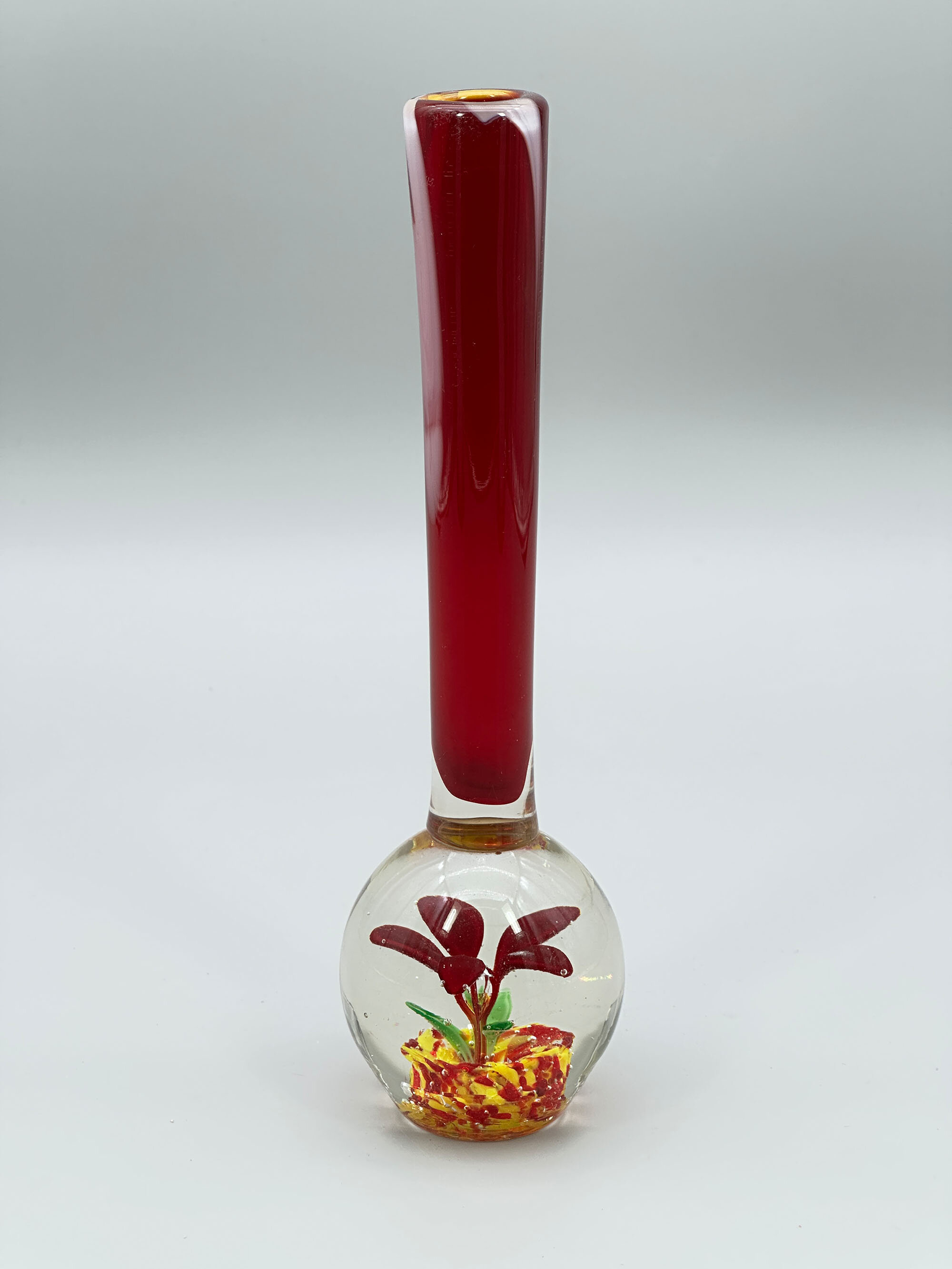 Murano bud glass vase with paperweight base, second half C20th