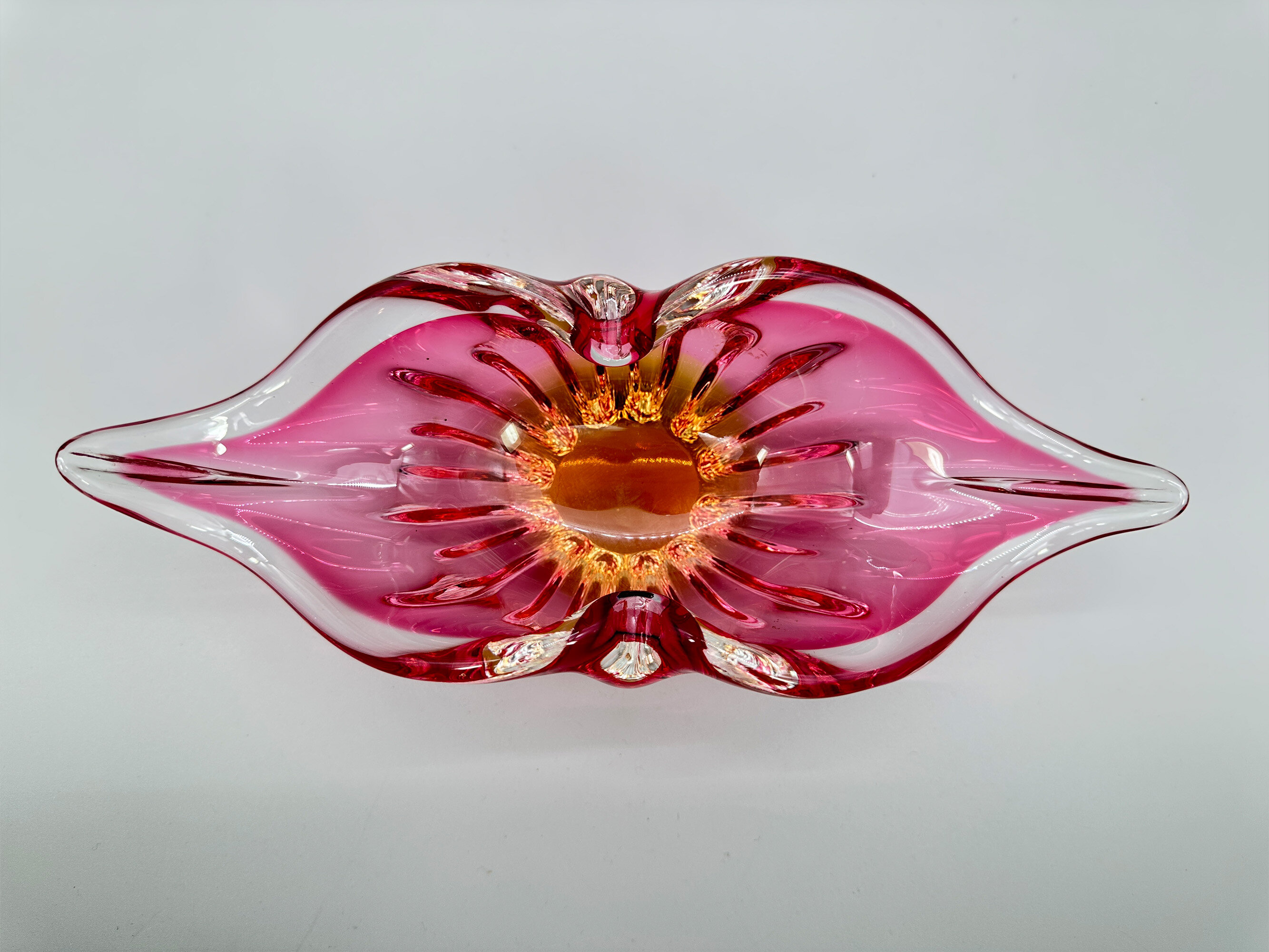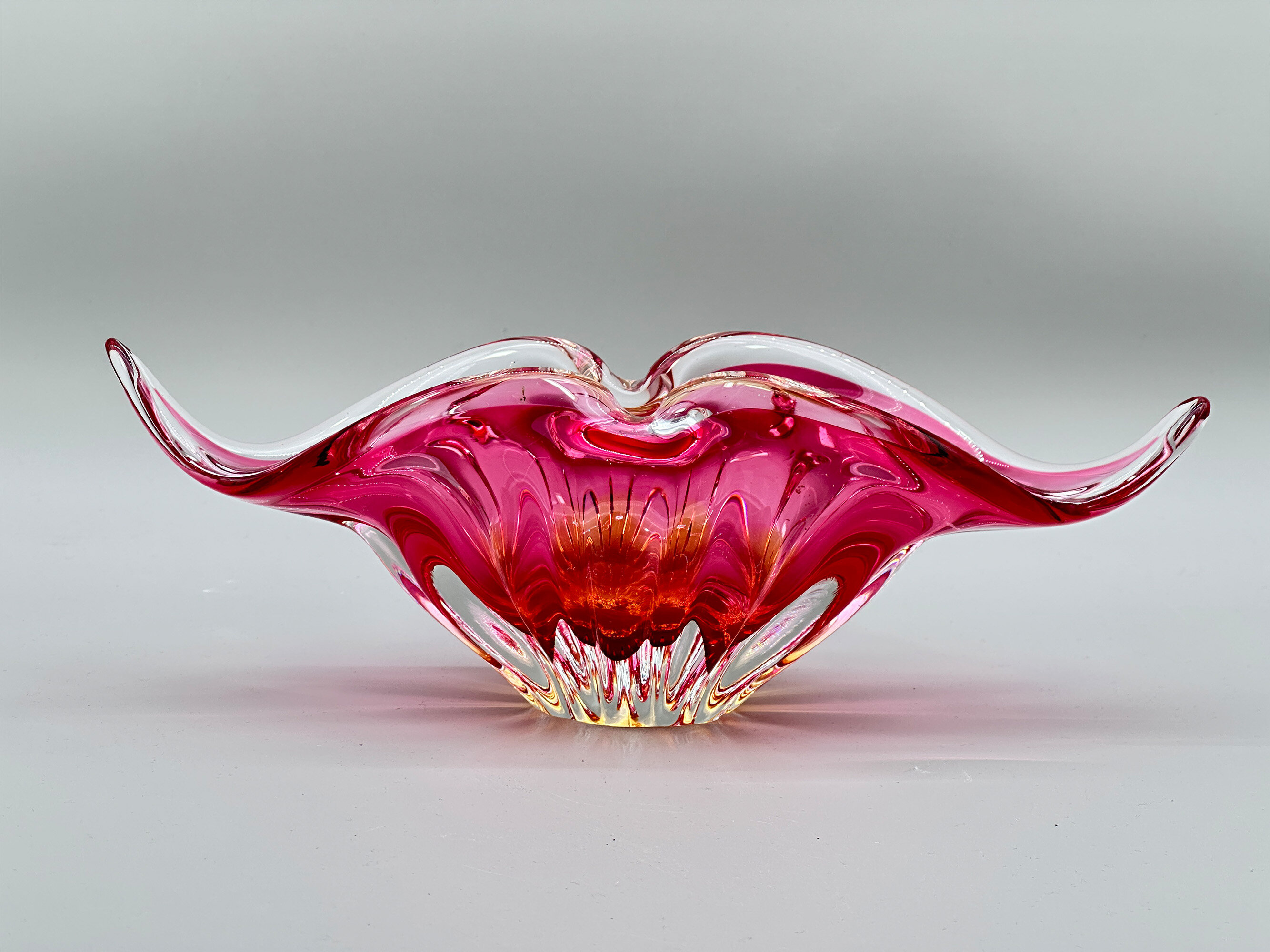 Pink and Orange Glass Bowl, Chřibská Czechoslovakia, Josef Hospodka, late C20th