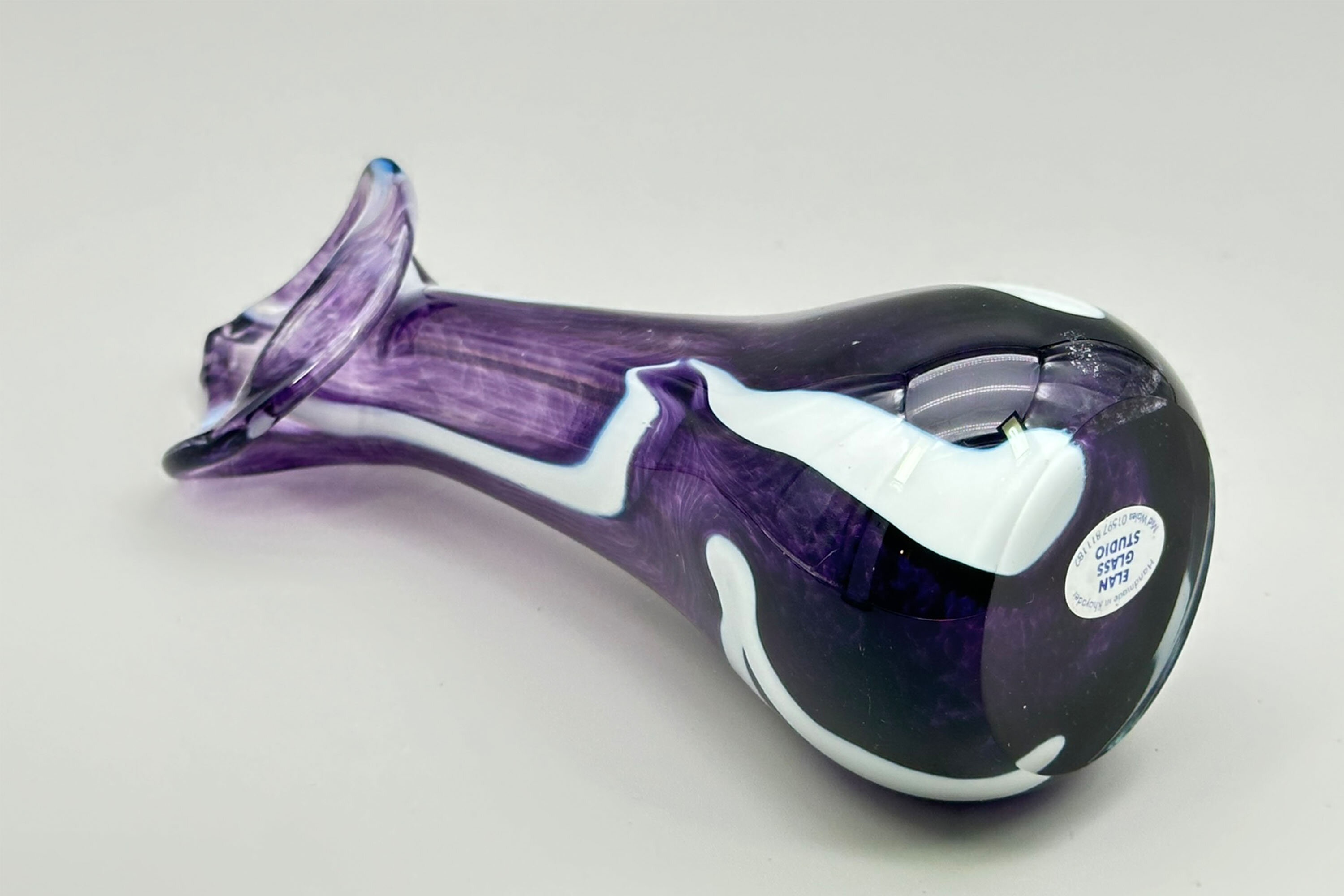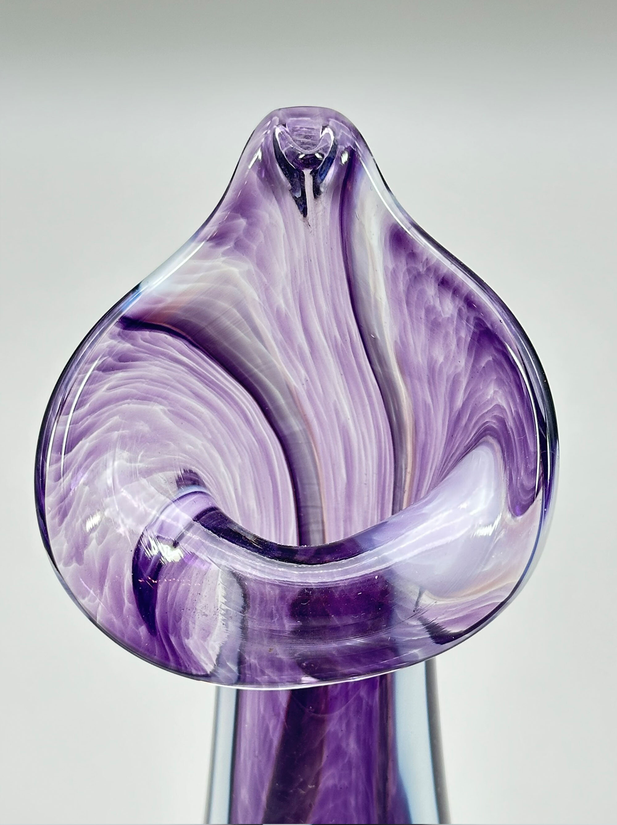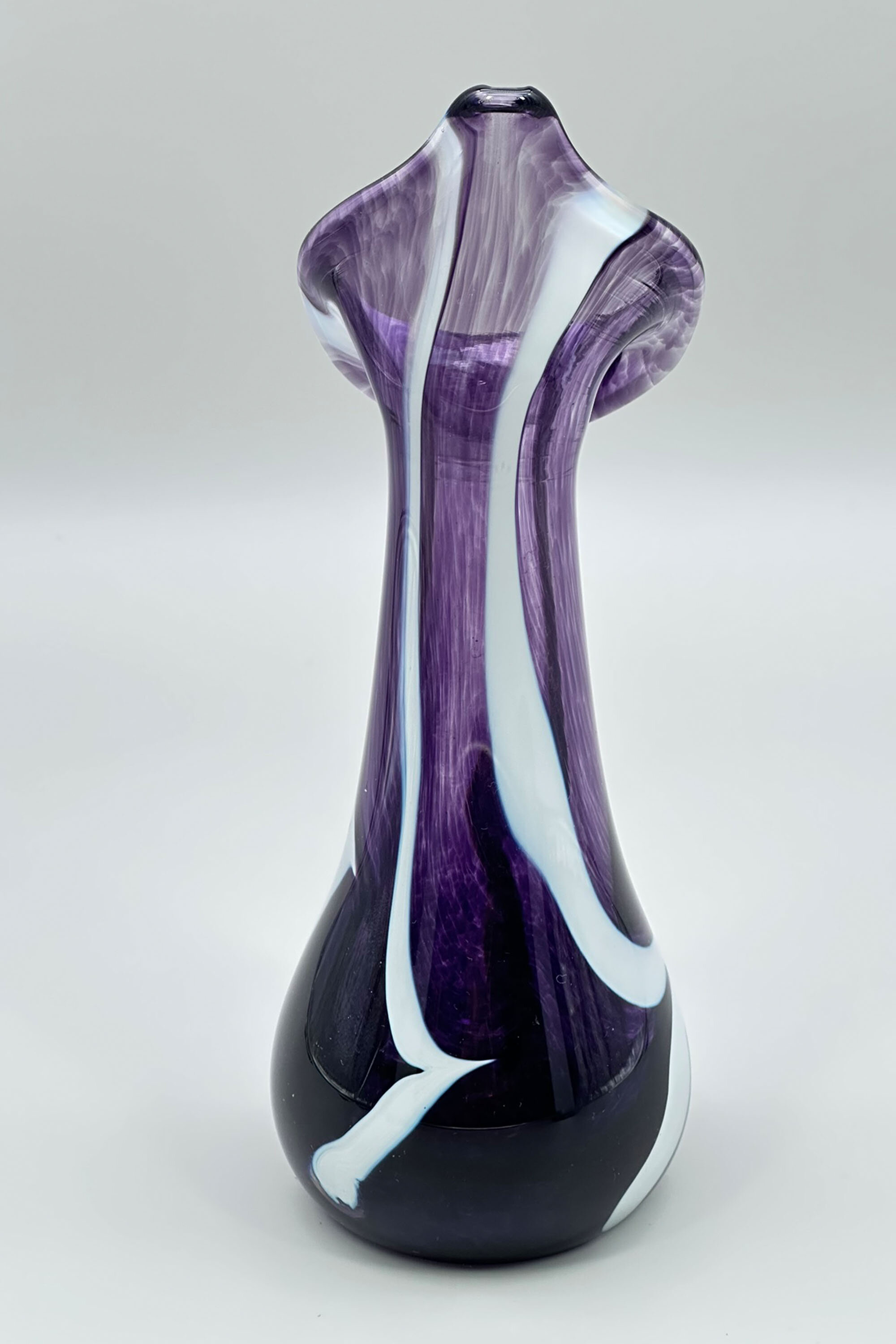 Purple and white glass Jack in the Pulpit Vase, Elan Glass Studio, second half C20th