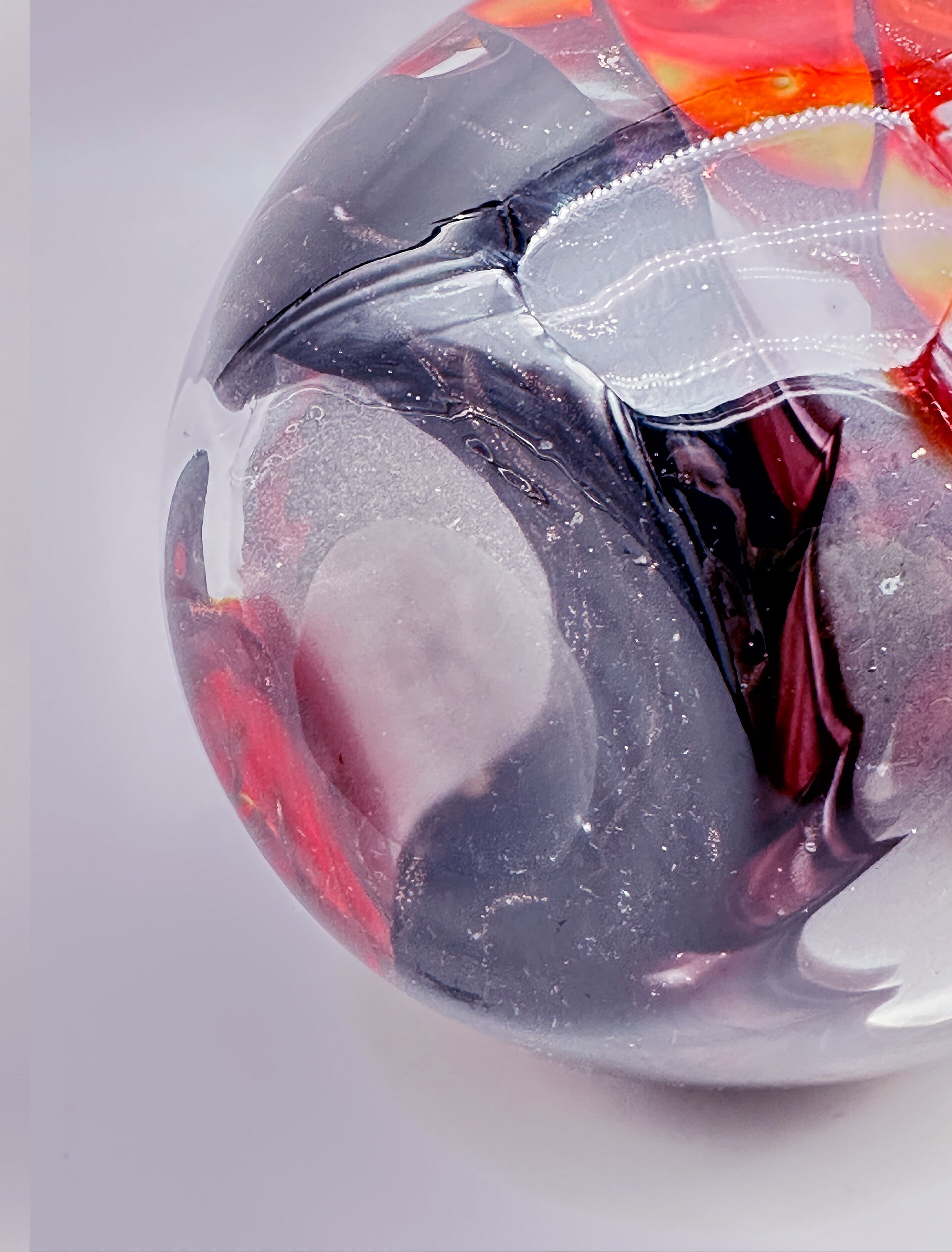 This is an exceptionally tall art glass bottle vase, the pear shape body rising to a tall, slender neck very slightly tapering inwards and then flaring gently outwards to the uneven profile top rim, the base flat and the decoration with trails of gently spiralling mottled and feathered orange glass on a black ground heightened with gilt speckle [CHECK]. The techniques used here have all the hallmarks of the Murano glassworks and the form, while unusual, is not inconsistent with the work produced there but, while these vases are often described as ‘Murano’ there is no proof of this and ‘Murano style’ is perhaps a safer description. But this does not detract from the grand magnificence of this piece, which would have been a striking decorative accessory when it was made, probably in the 1960s or 1970s, and remains so today.| Size: | Ht (max) 47cm, Top diam (max) 5.2cm, Width (max) 14.5cm, Base 8cm |