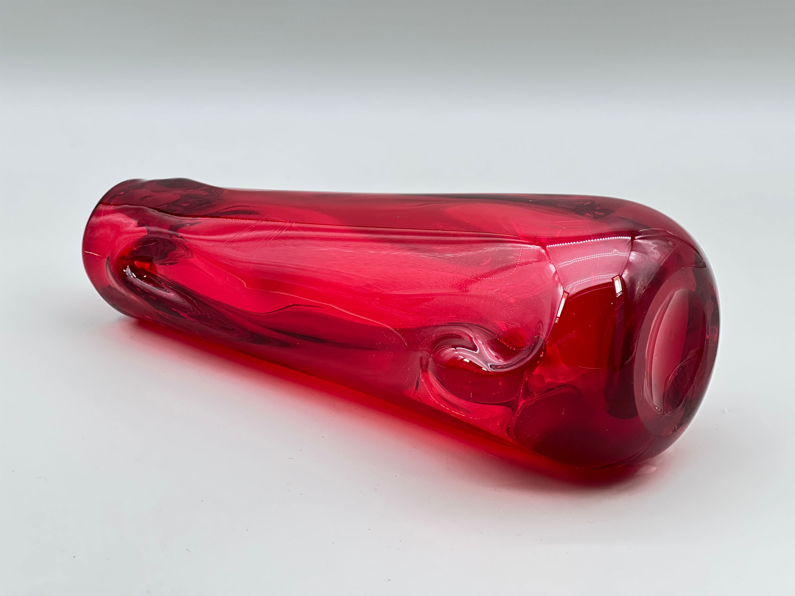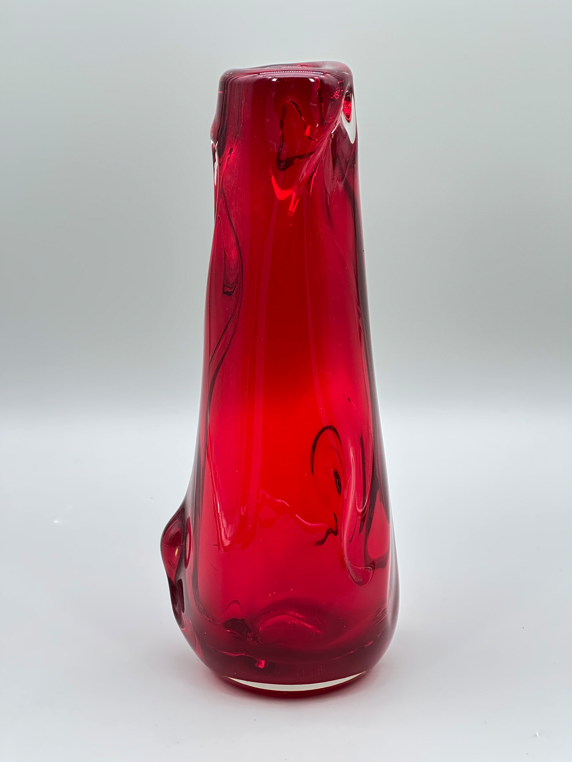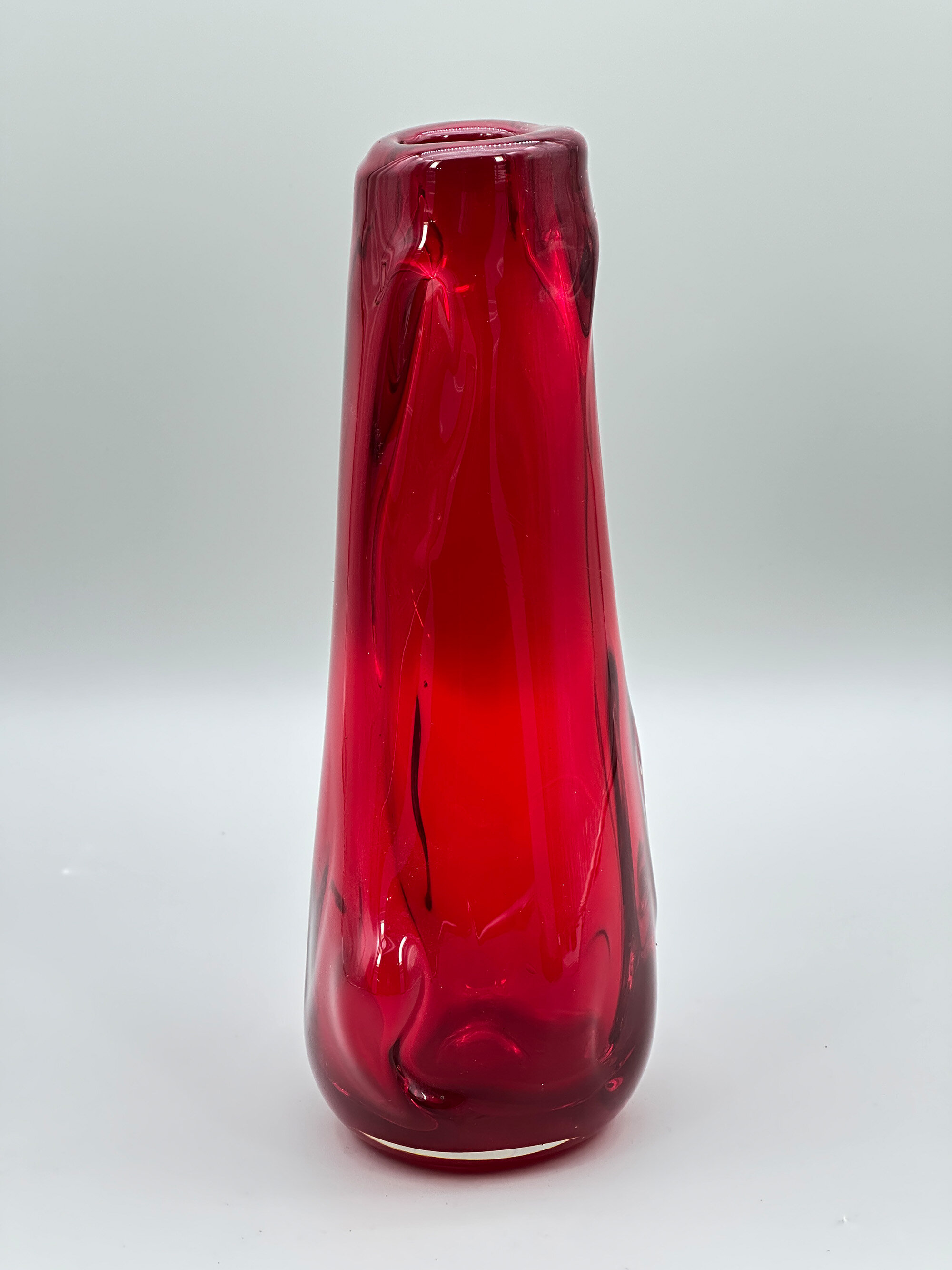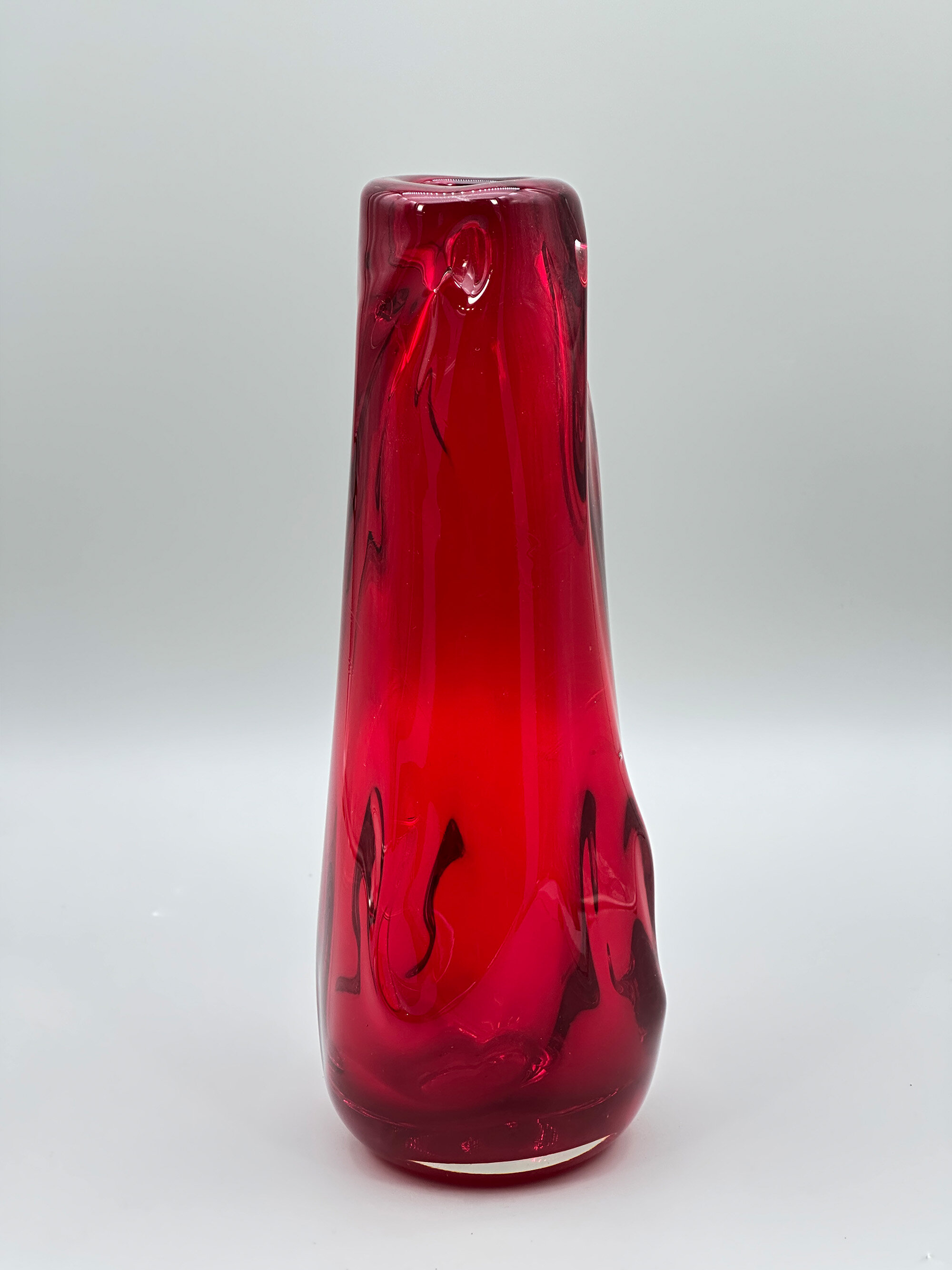 Whitefriars knobbly red glass Vase, pattern no 9612, 1960s