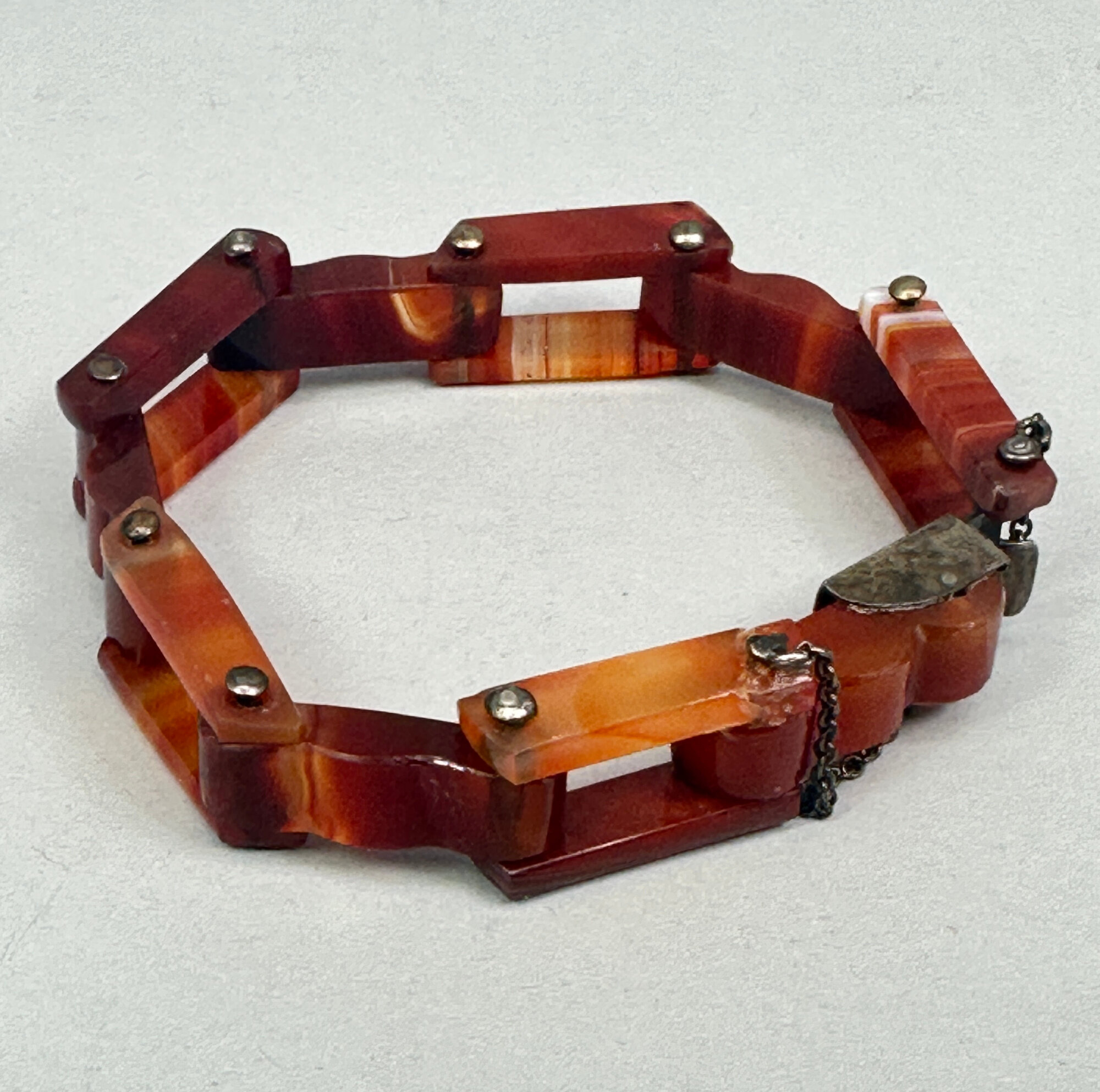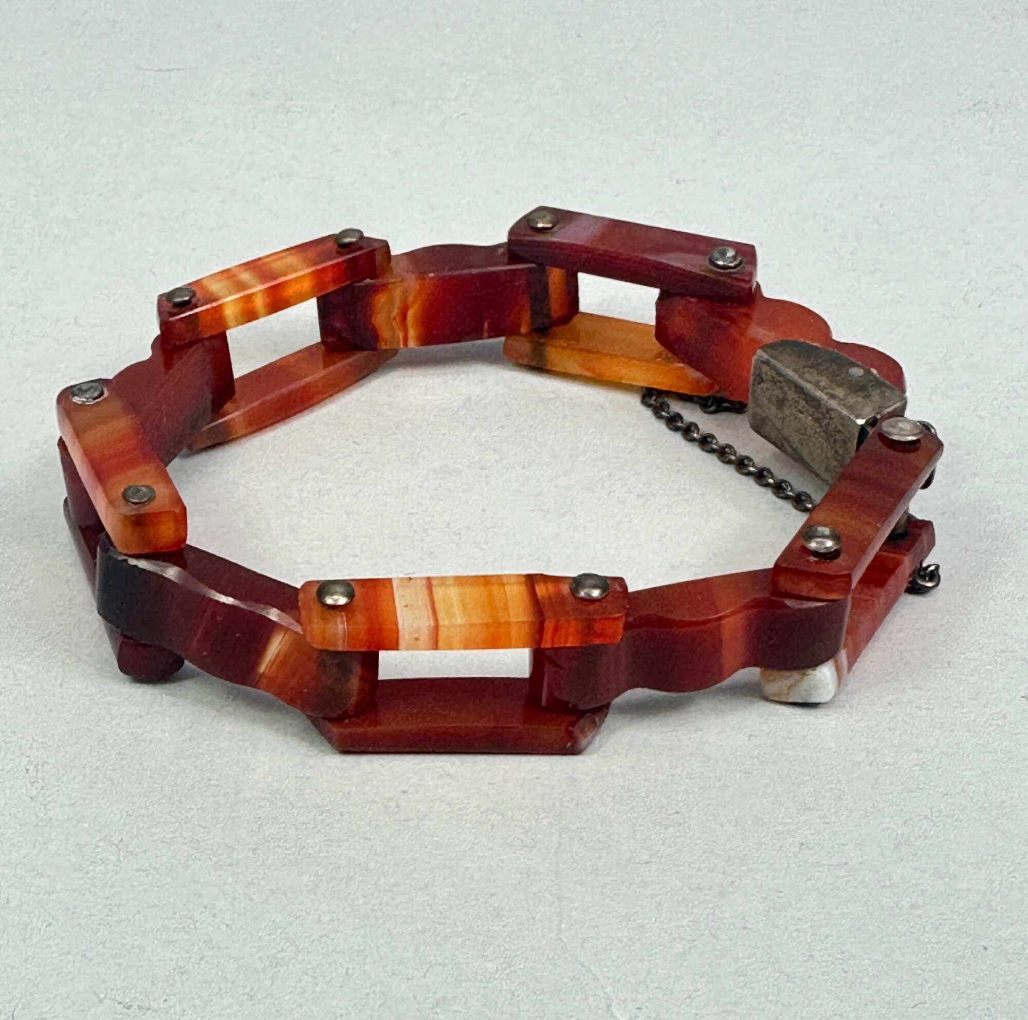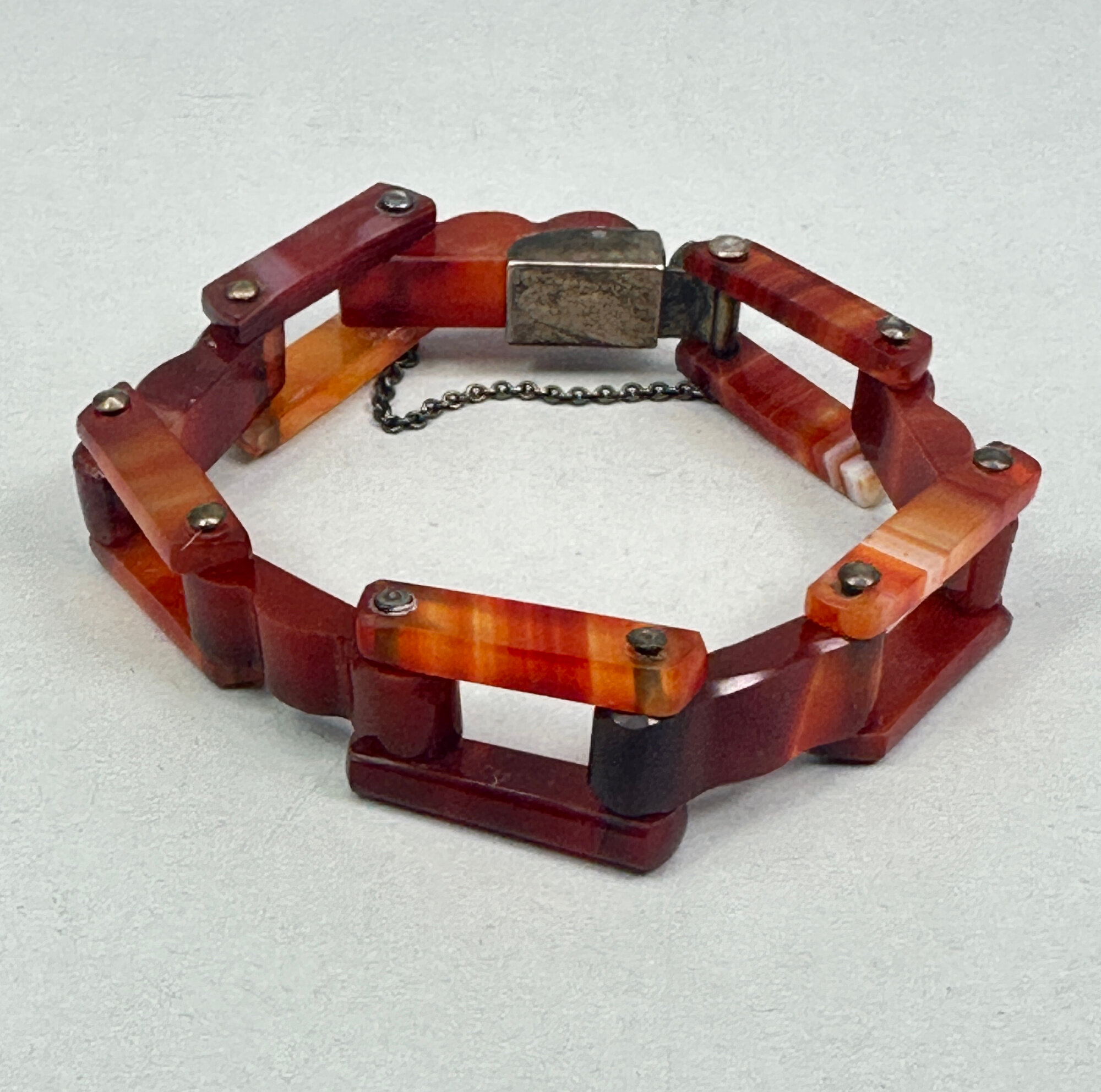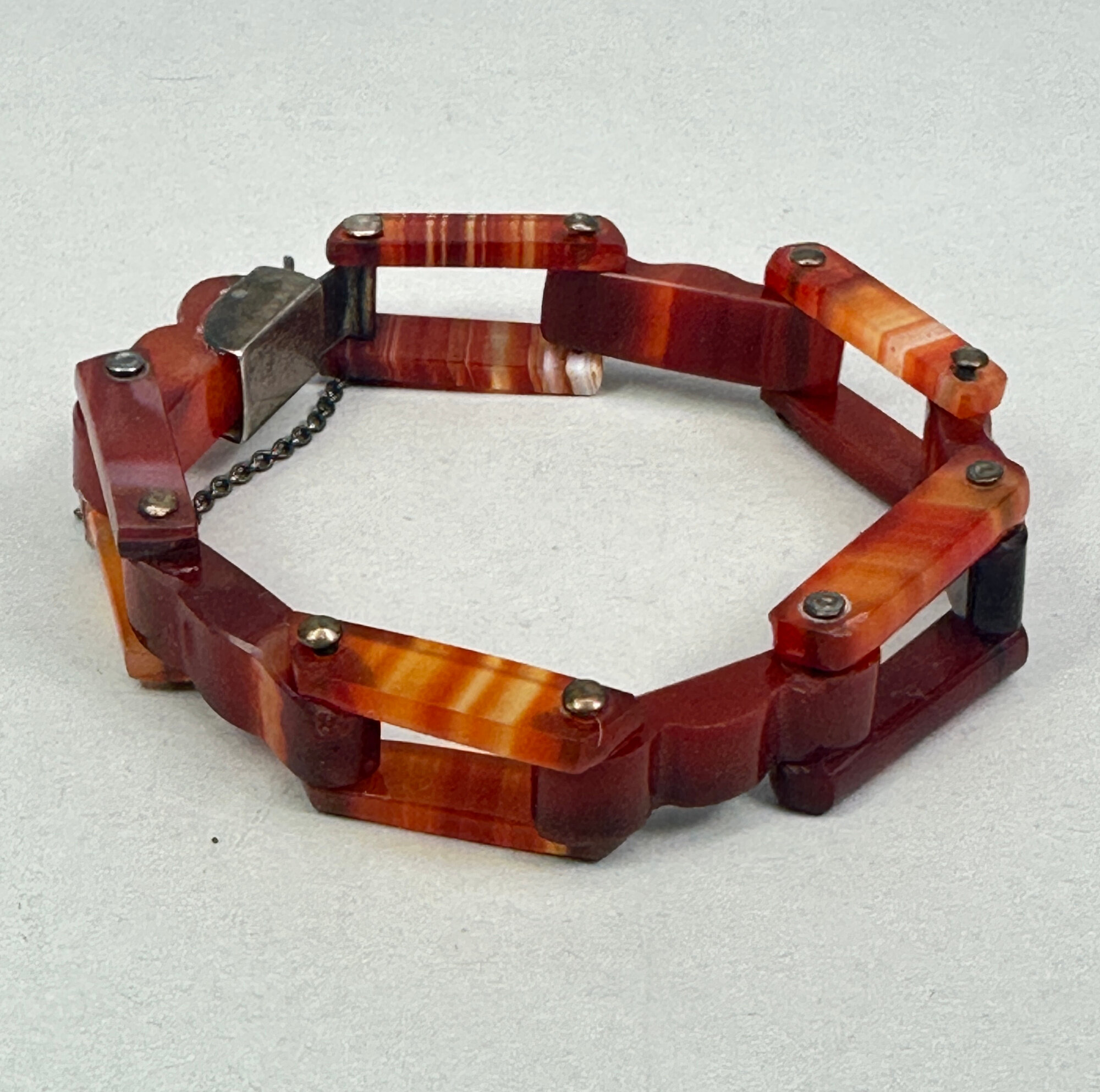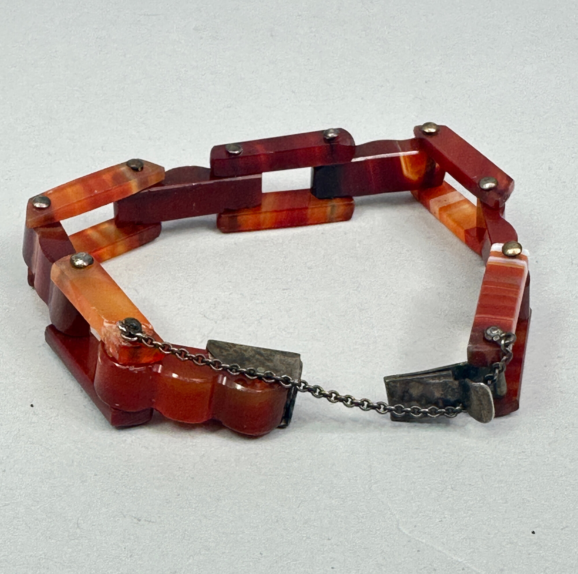 Art Deco Scottish banded carnelian carved link bracelet c1920