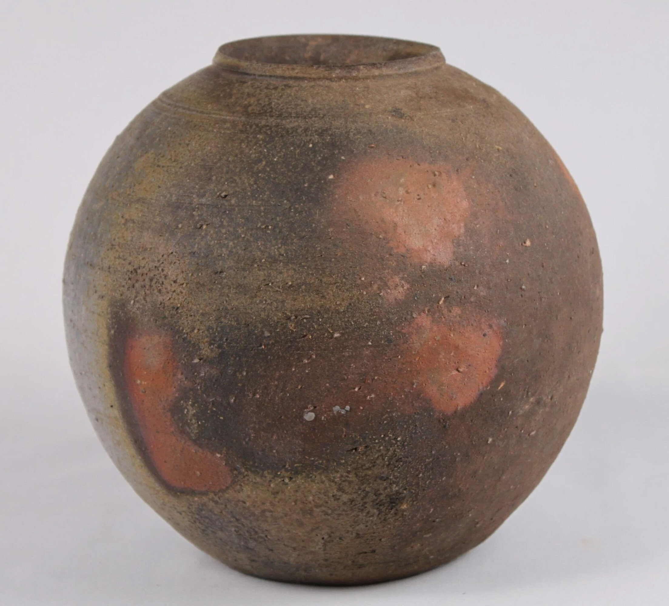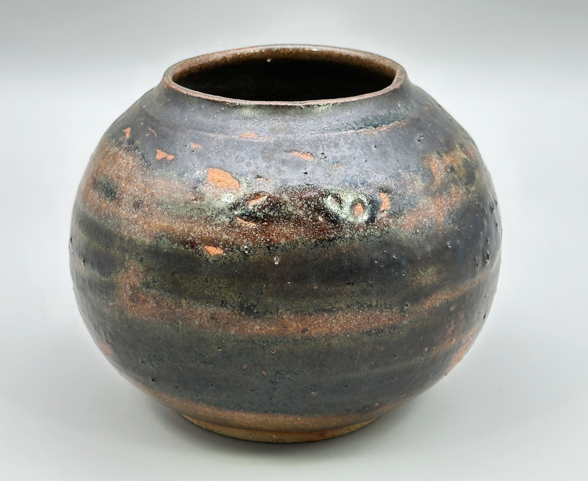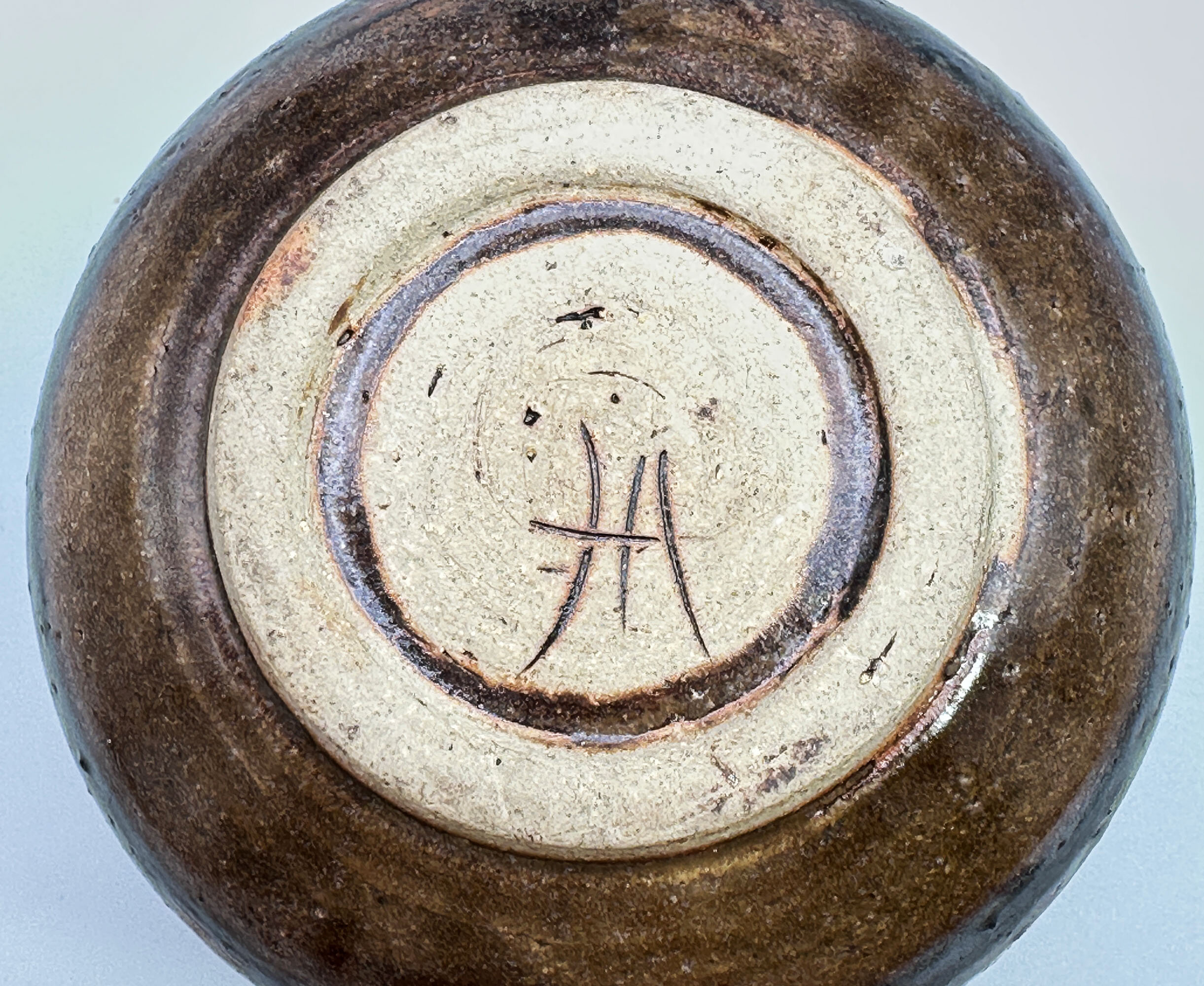 A small vase or jarlet of globular form with a short concave neck glazed in browns and greens with popped bubbles in some places and traces of the ceramic body in others where the glaze has crawled slightly, the interior with clearly visible potting rings and the base unglazed with a brown glaze circle to the centre within which are the incised initials ‘HA’ as a monogram. This piece, in common with so many of its studio pottery companions, looks clearly towards the East and reminiscences can be seen of both Chinese ‘Cizhou’ (see image 7) and Japanese ‘Bizen’ (see image 8) wares but while the identity of its maker is yet to be established the skill of the craftsmanship is evident enough.