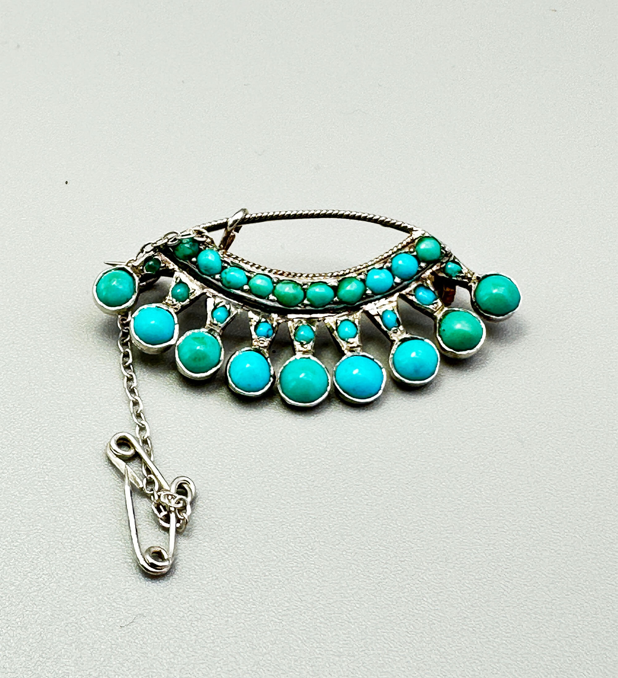 Edwardian silver and turquoise brooch c1910