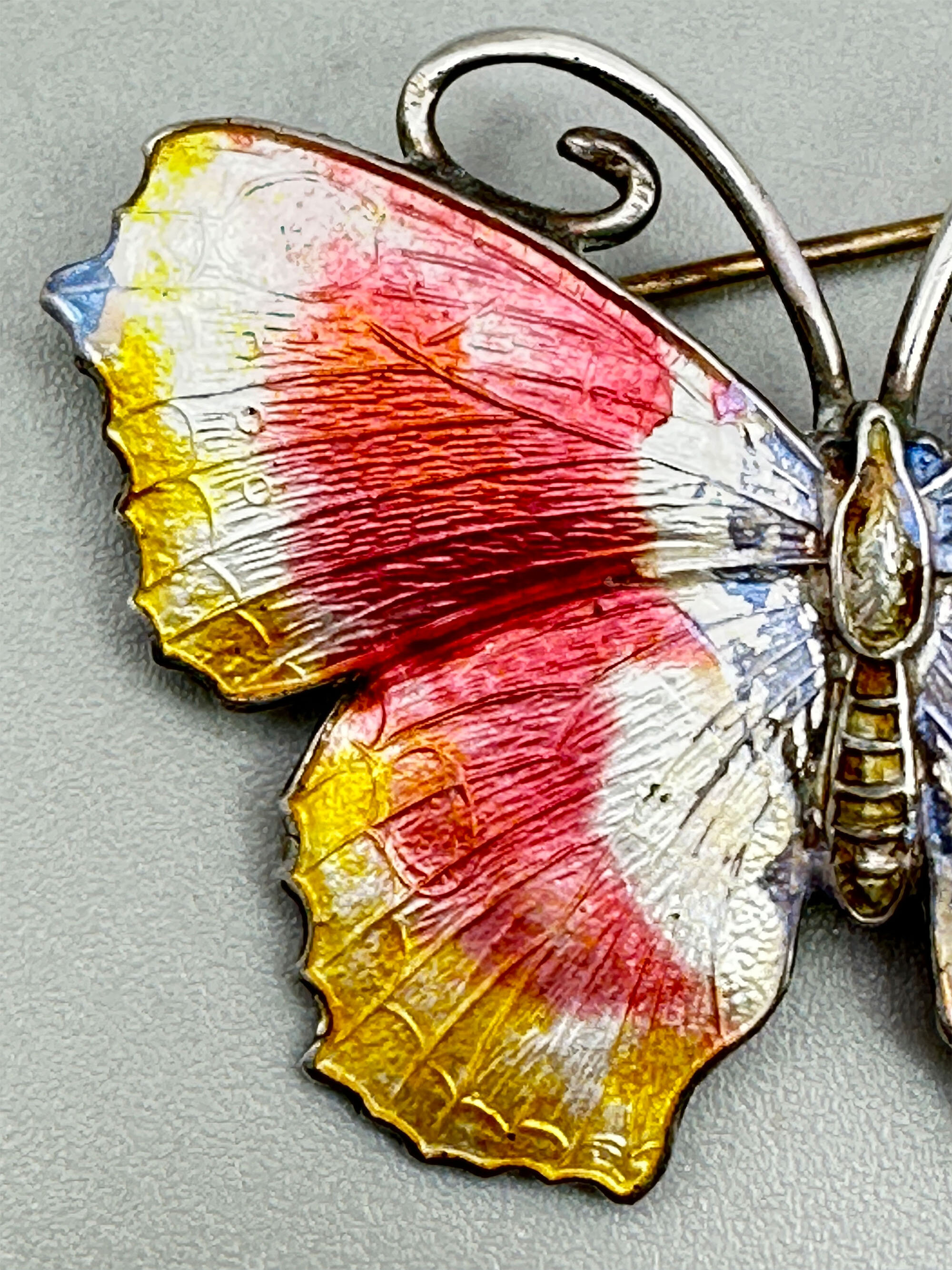 Pink and yellow enamel butterfly brooch, Norway c1950
