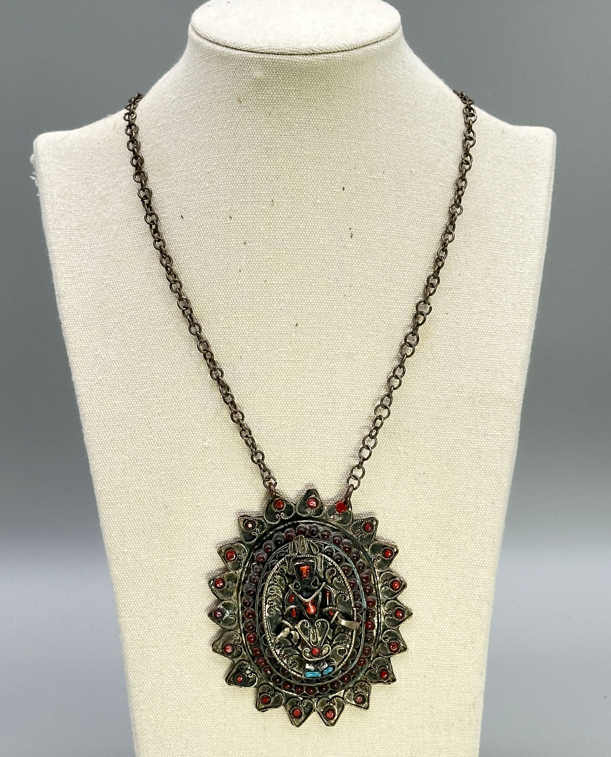 Tibetan amulet necklace featuring Buddhist deity c1900