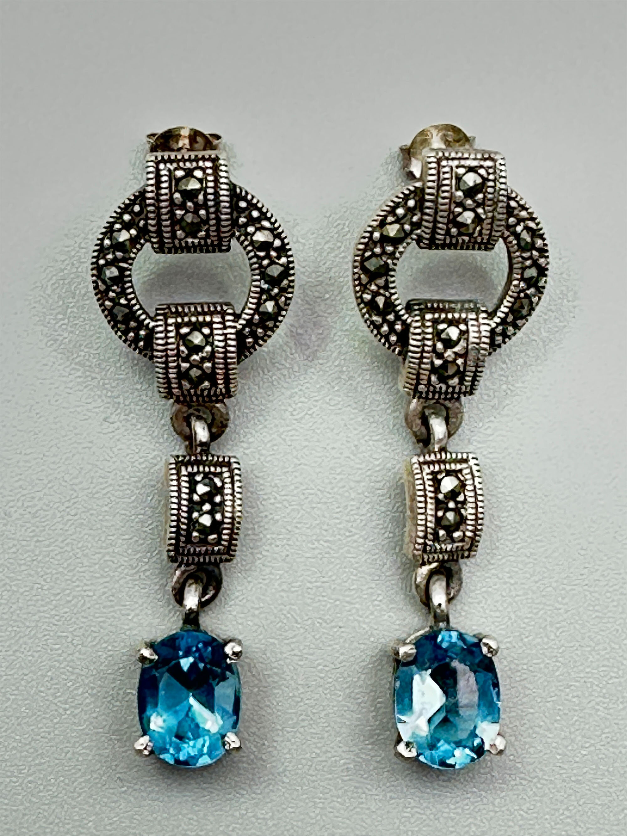 Art Deco marcasite and aquamarine earrings c1940