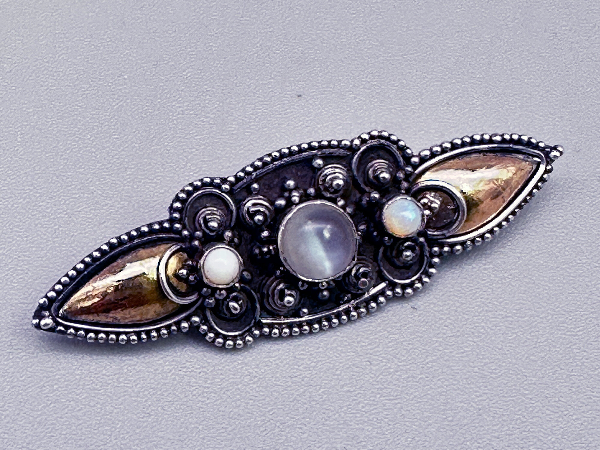 Brooch with moonstone and millegrain work c1900