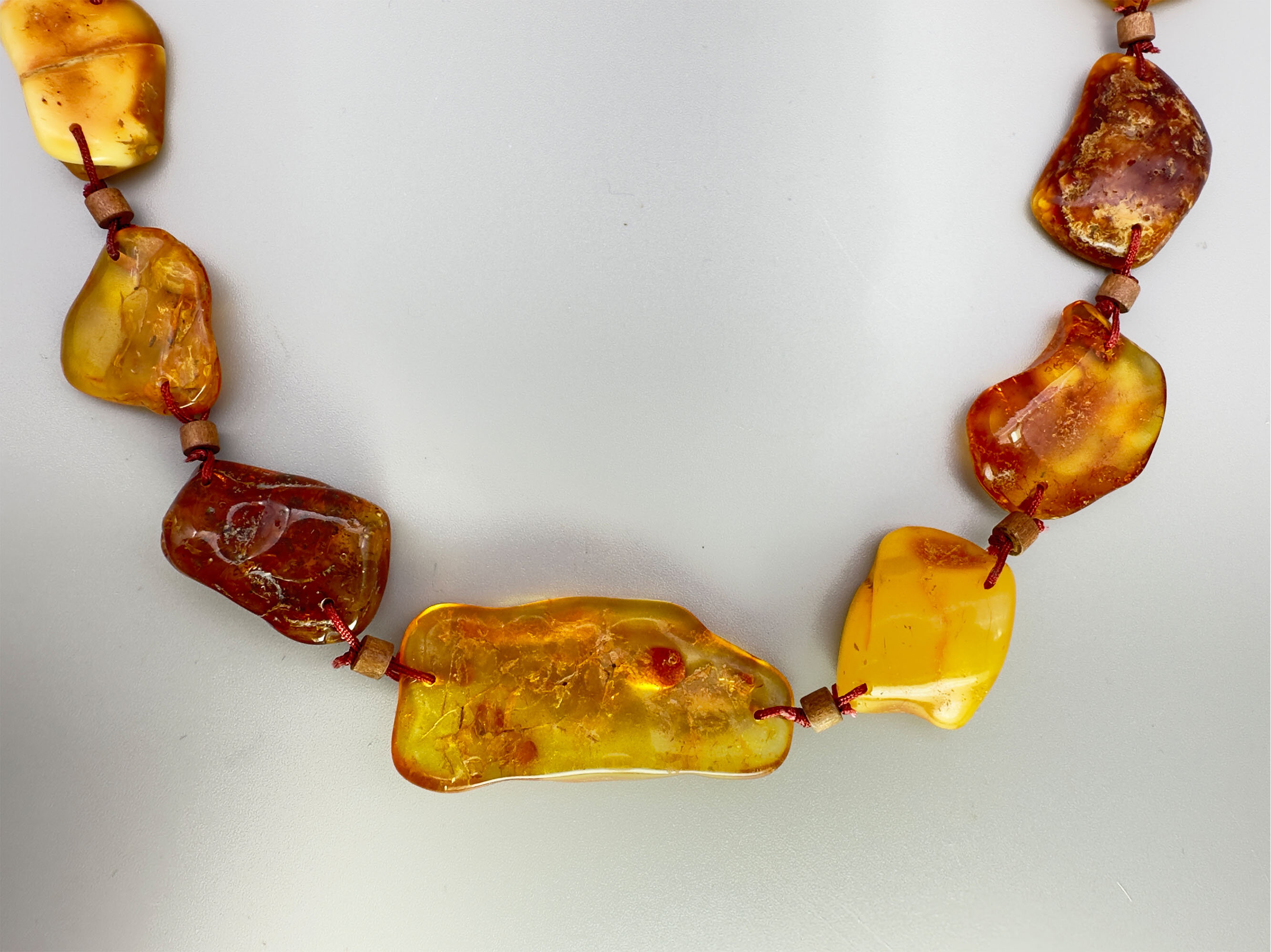 Necklace with large natural amber pieces, c1970