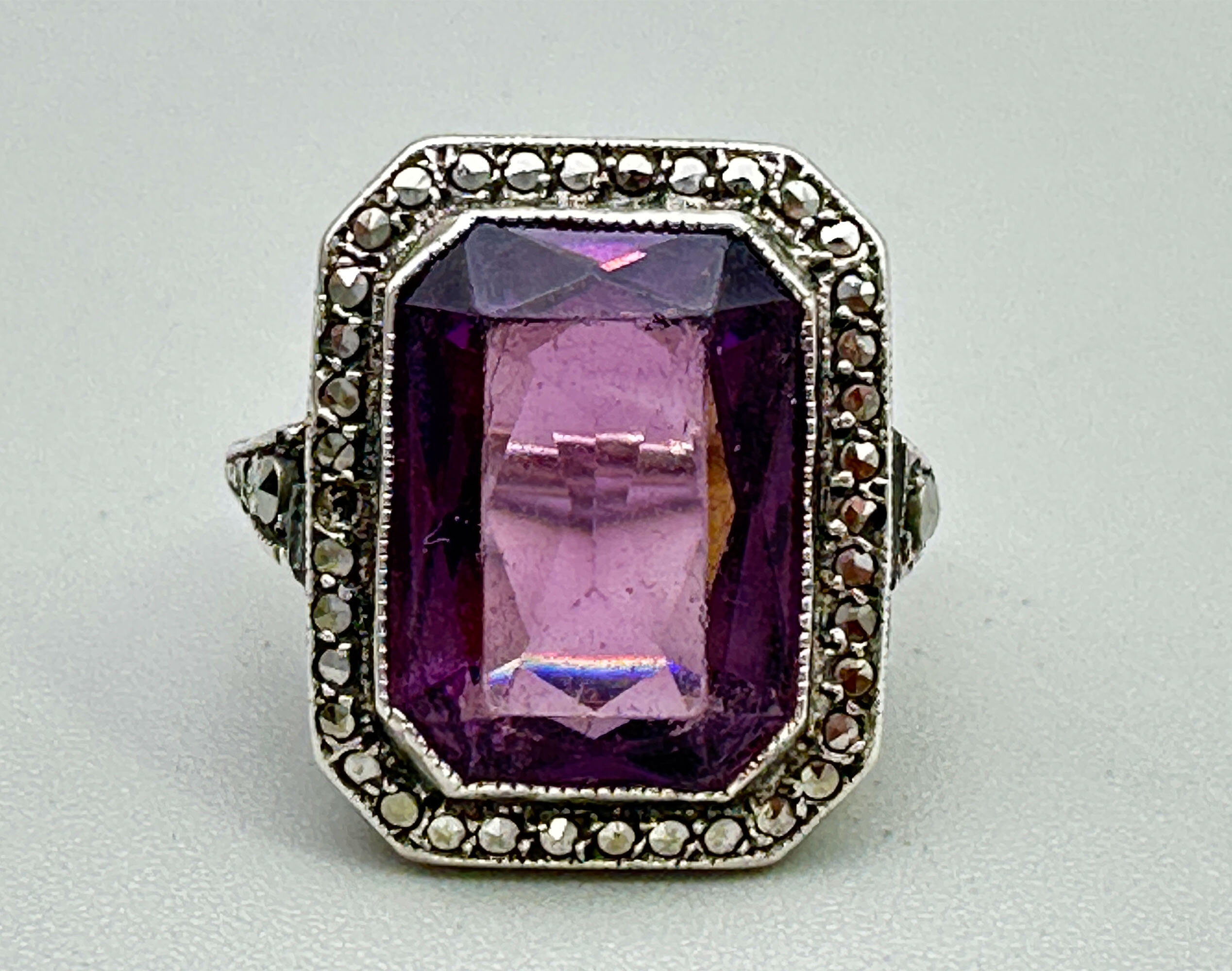Art Deco emerald cut paste stone ring c1920