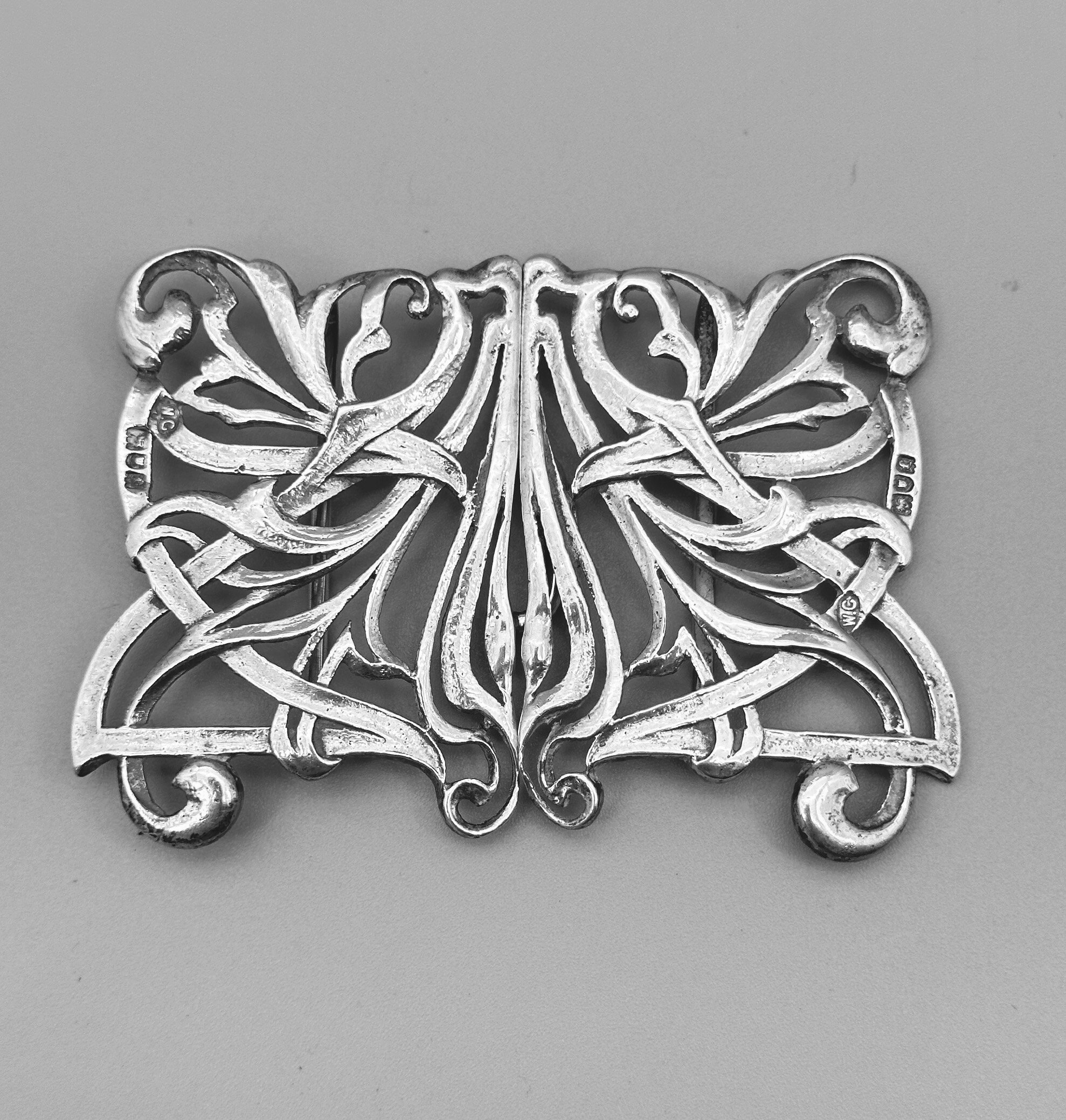 Art Nouveau William Comyns silver buckle, 1901