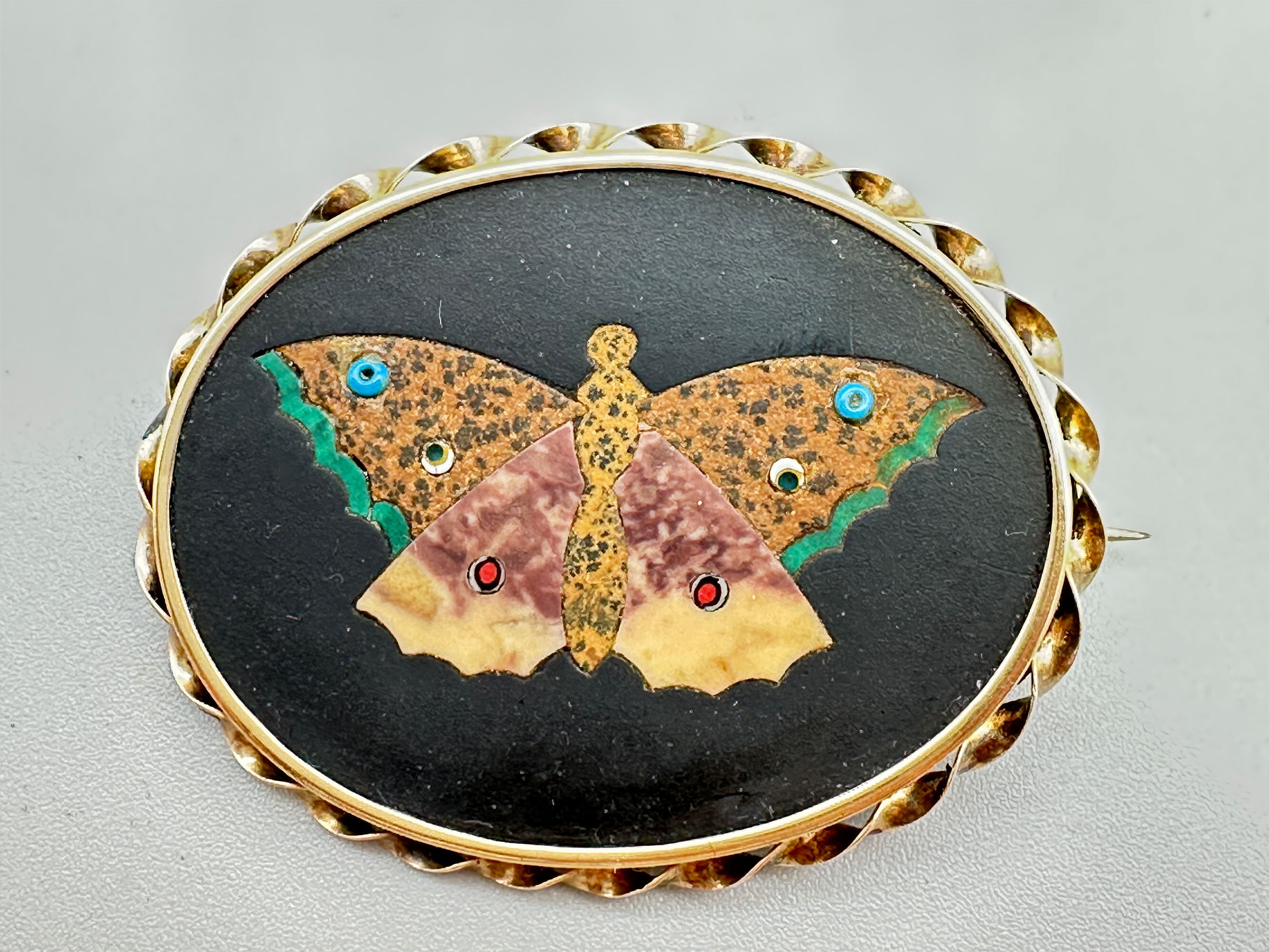 Pietra Dura jasper moth brooch c1920