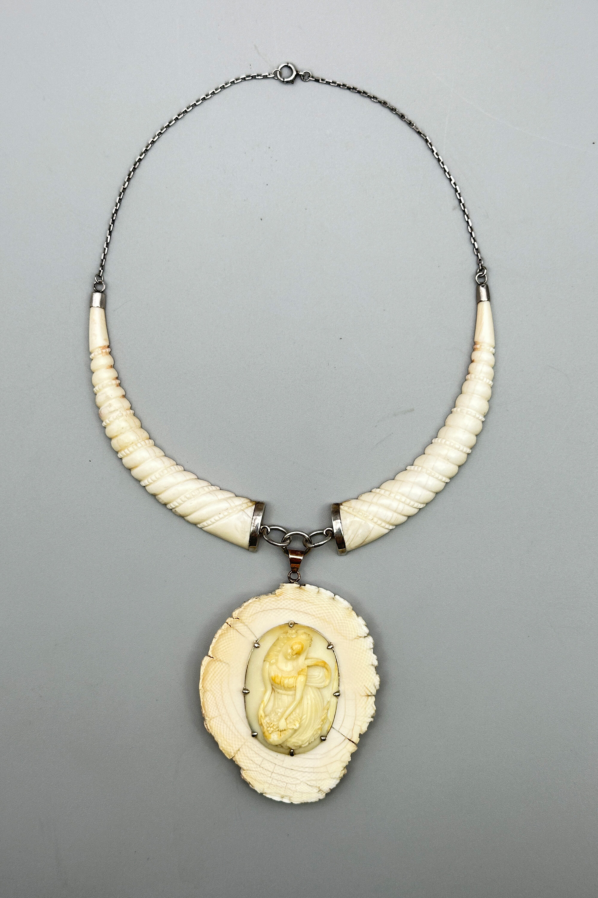 Victorian carved bovine bone necklace, Indian c1900