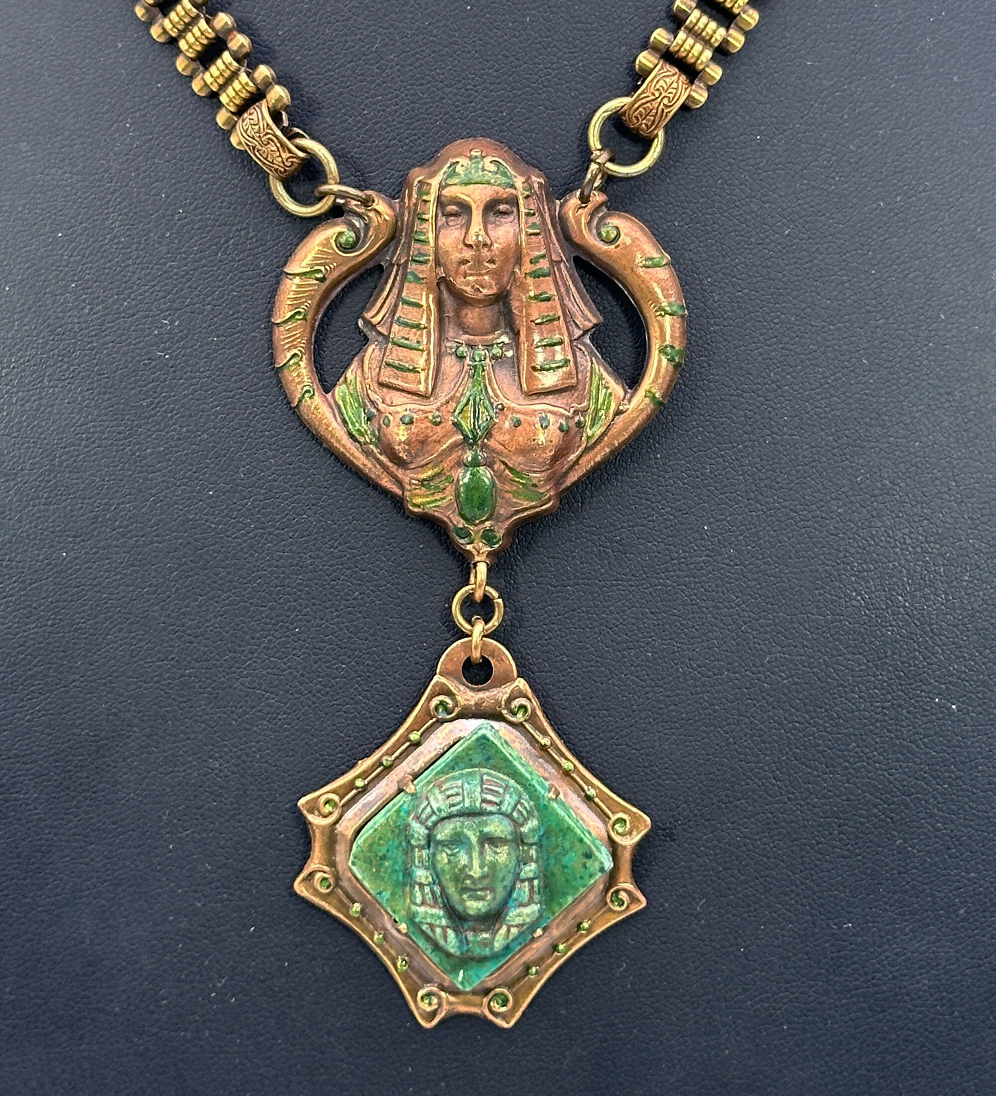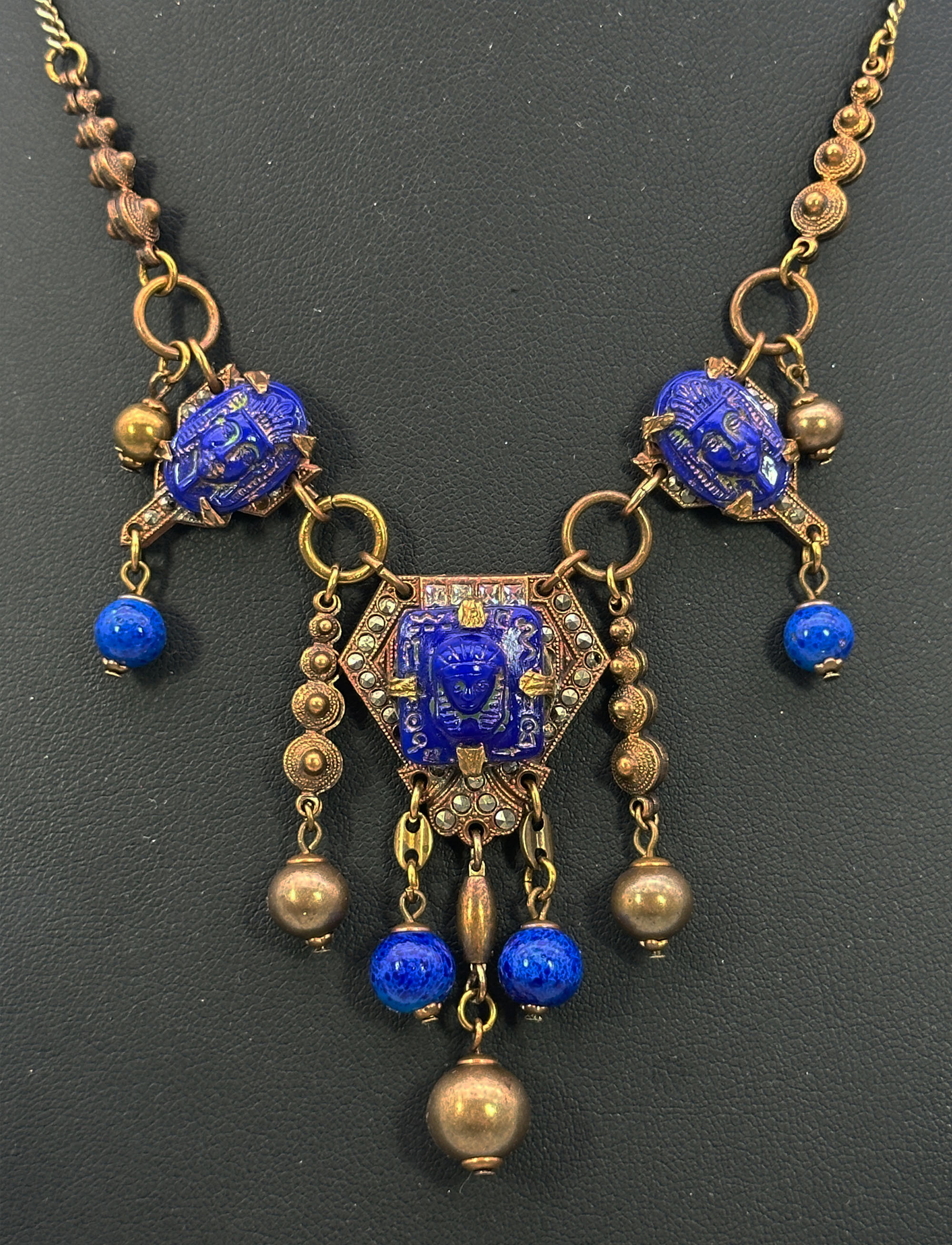 Neiger Brothers necklace with Egyptian Revival glass plaques c1930