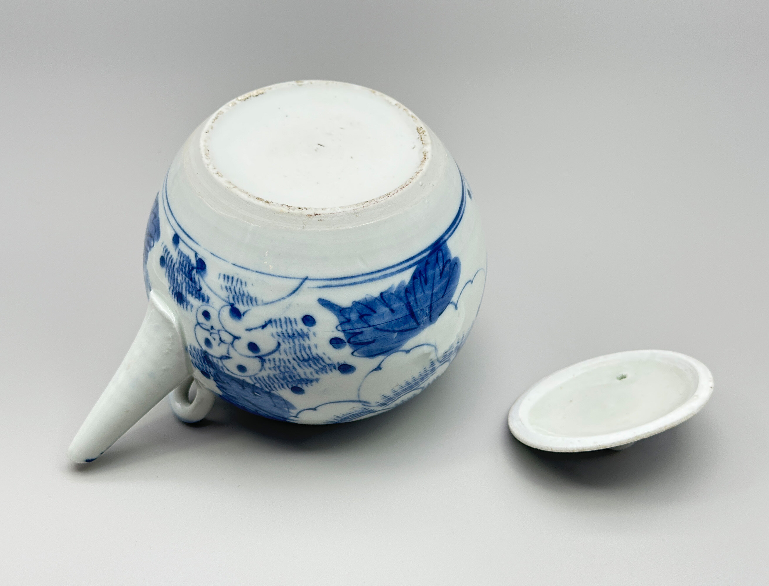 Japanese Blue and White Teapot, Cover and Liner, Aizu-Hongo ware, late C19th/early C20th
