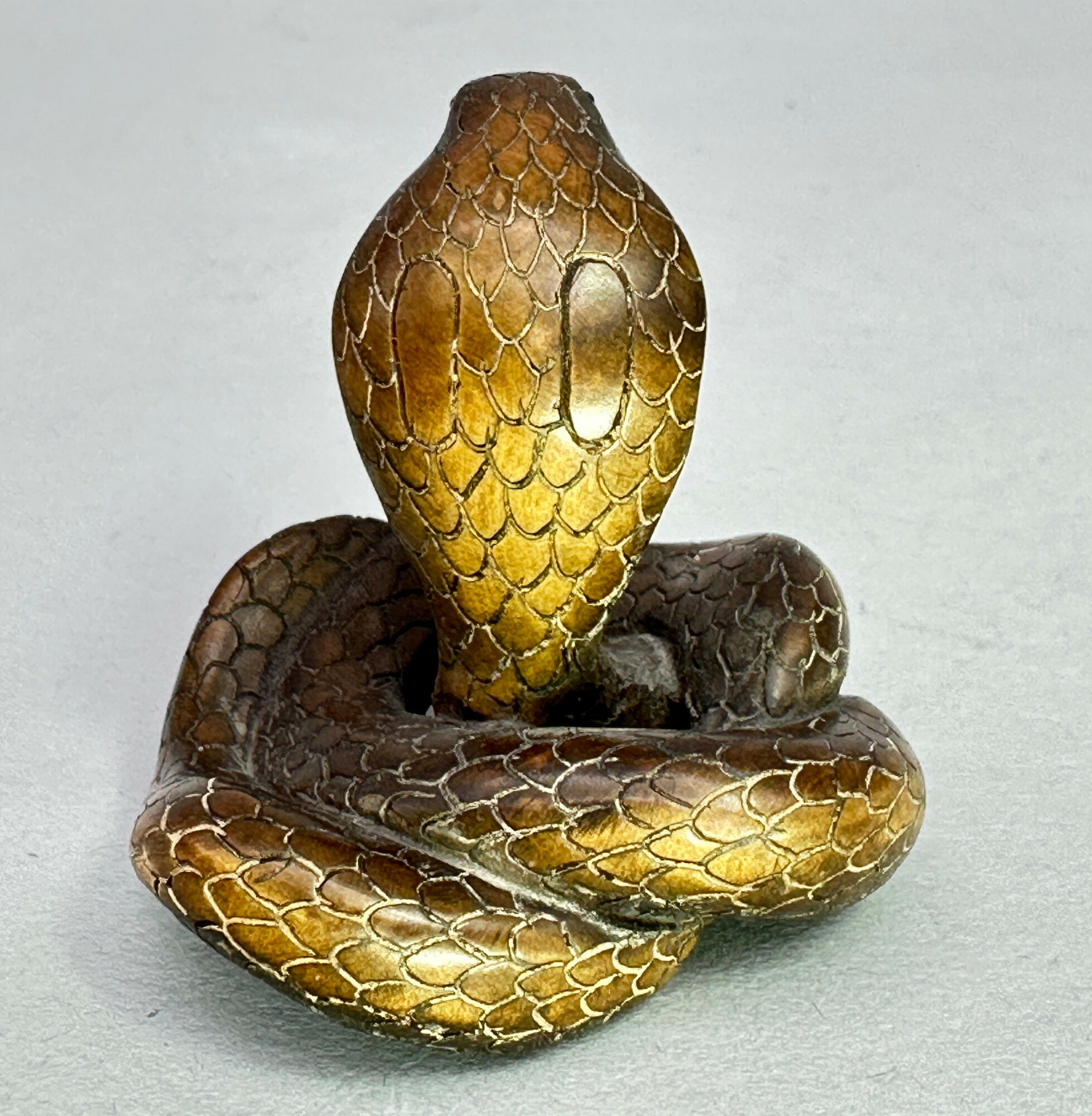 Japanese wood Netsuke of a Cobra, signed, C19th