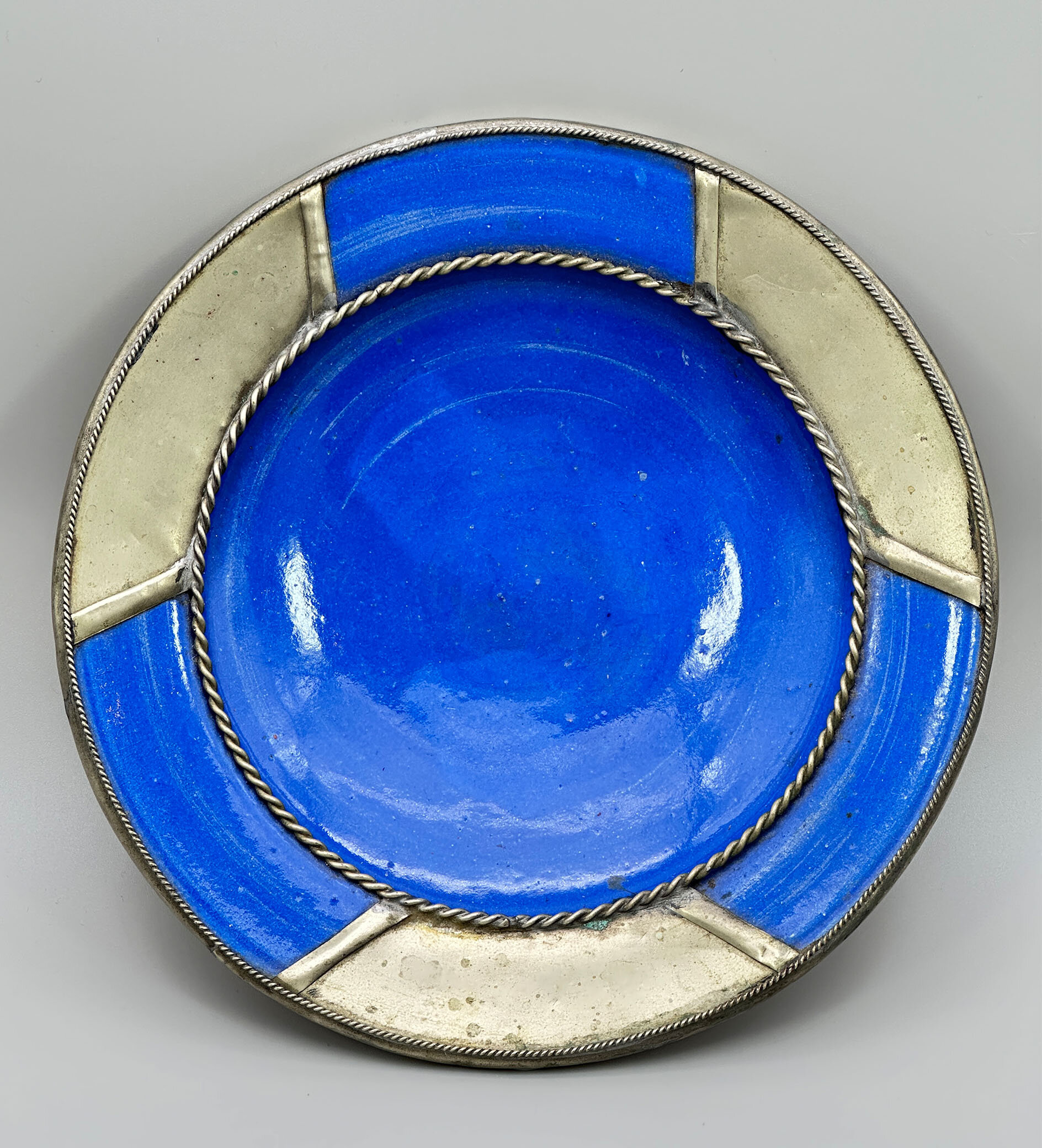 A Papier Mâché Tray of octagonal form with rounded indented corners profusely decorated in rich and detailed colourings with small floral blooms, the ‘millefiori’ (thousand flower) pattern, a central roundel and four hemisphere panels at the corners all set on an orange ground, the border with bands of floral spray and repeating geometric design in gilt, the reverse plain showing the black lacquer ground. Trays and boxes in this distinctive style were made in Kashmir in India and some carry the label for Srinagar, a city famous for traditional Kashmiri handicrafts like the Kashmir shawl, papier mâché, wood carving, carpet weaving, and jewel making, which is most likely the place where this tray was made, probably in the 1920s. It is a superb example of the type with exquisite detail in the decoration and a strikingly attractive use of colour.| Size: | 54 x 34.5 cm |